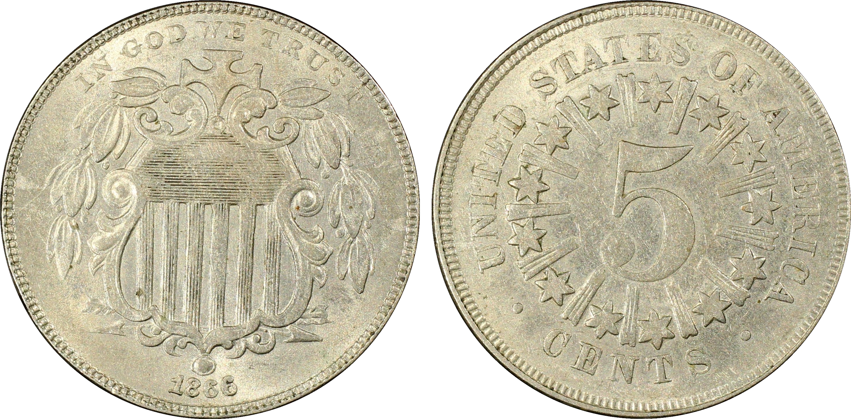 In 1866, the U.S. government introduced a new 5 Cent piece made of nickel as an alternative for the silver Half Dime. The two coins were issued side-by-side through 1873, after which the Half Dime was discontinued and the "Nickel" became the coin of the land. The new metal, because it was so hard, made it difficult to strike the coins, and the dies suffered frequent cracking. Part of the problem was the intricate reverse, where stars were squeezed tightly between small rays surrounding the large "5". Ultimately, the rays were removed from the dies mid-1867, but this did not solve the cracking problem entirely.