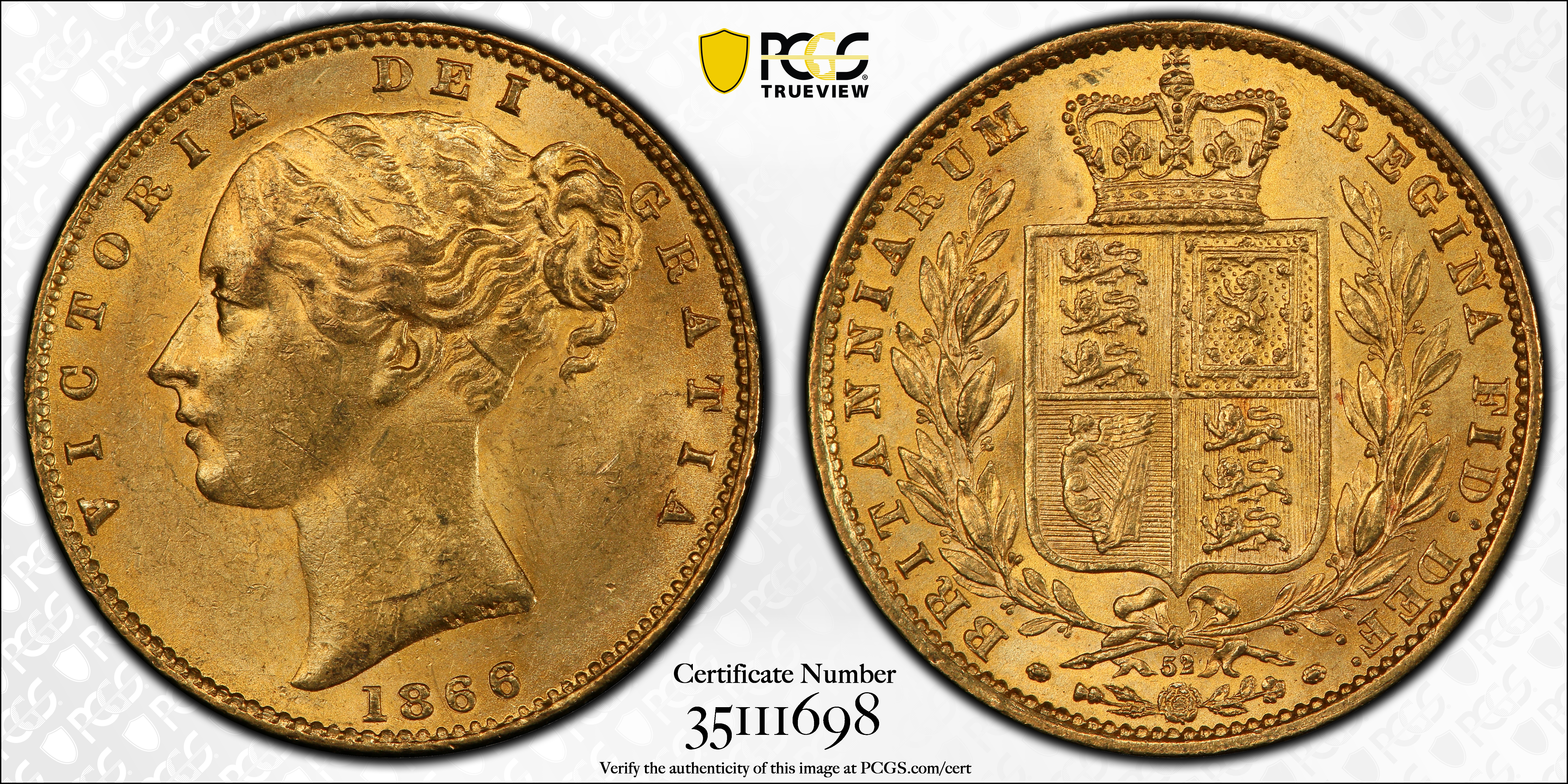 1866 Sov S-3853 MS62 Certification #35111698, PCGS #206979