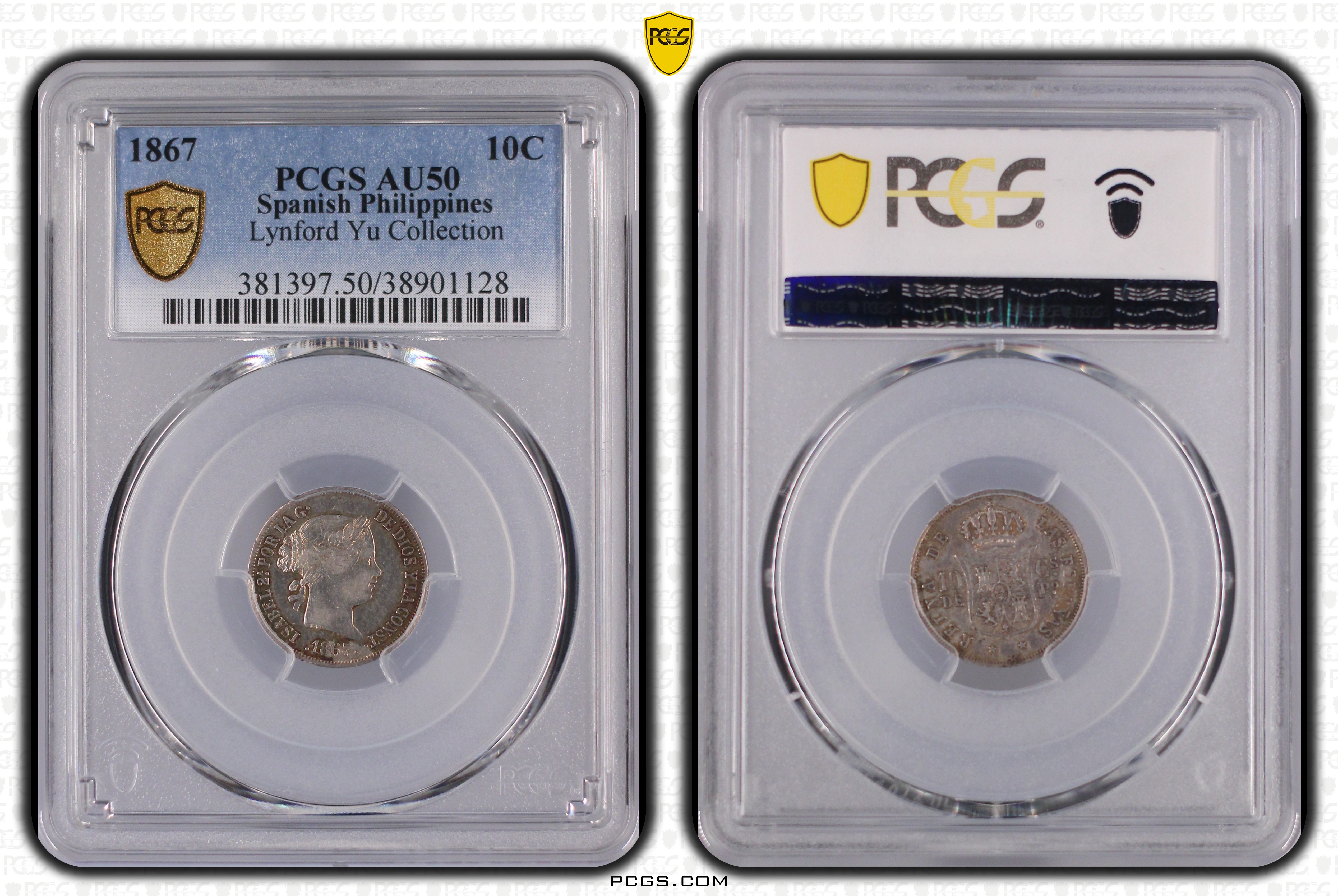 1867 10C AU50 Certification #38901128, PCGS #381397