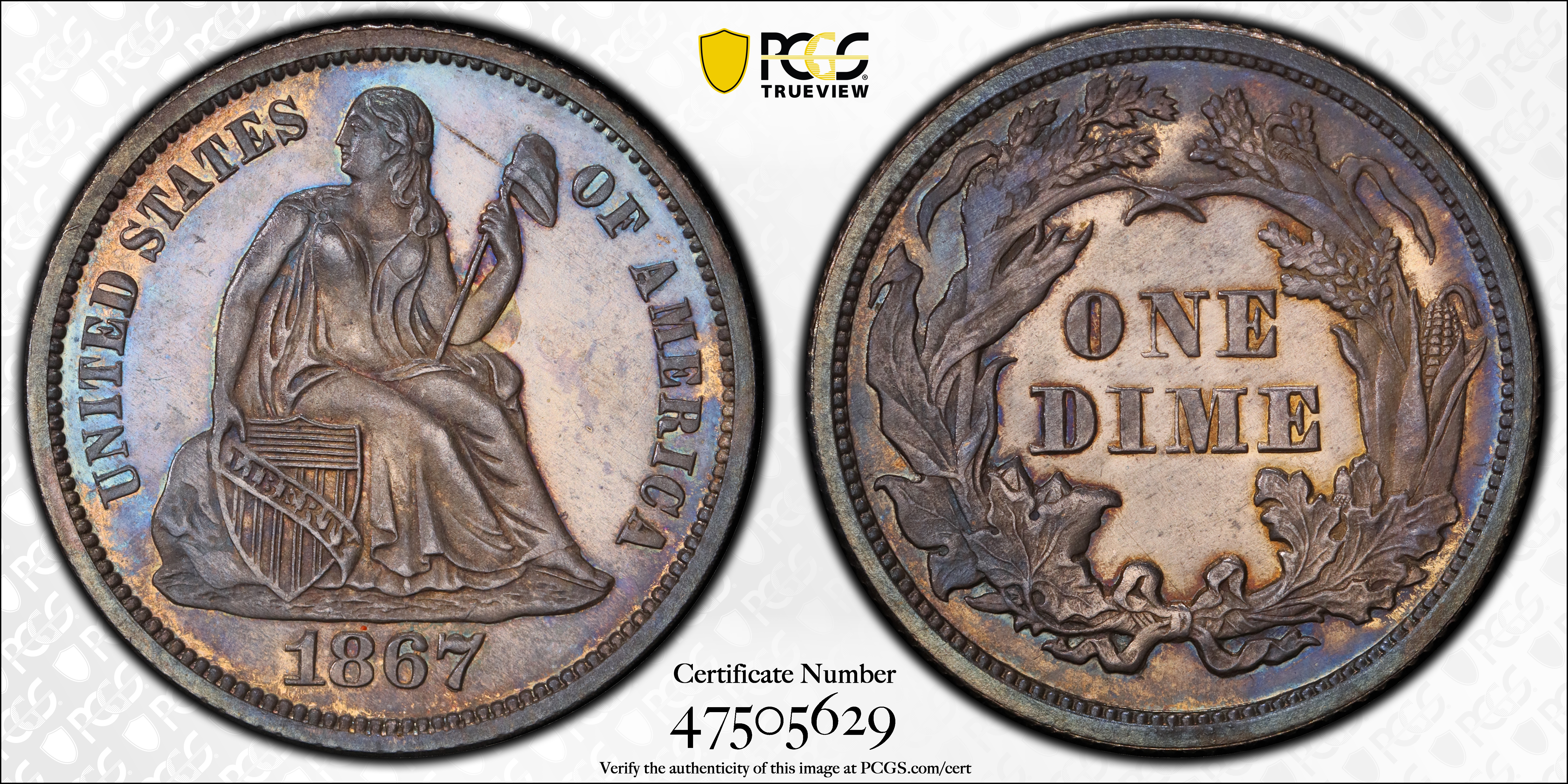 1867 10C PR65 Certification #47505629, PCGS #4760