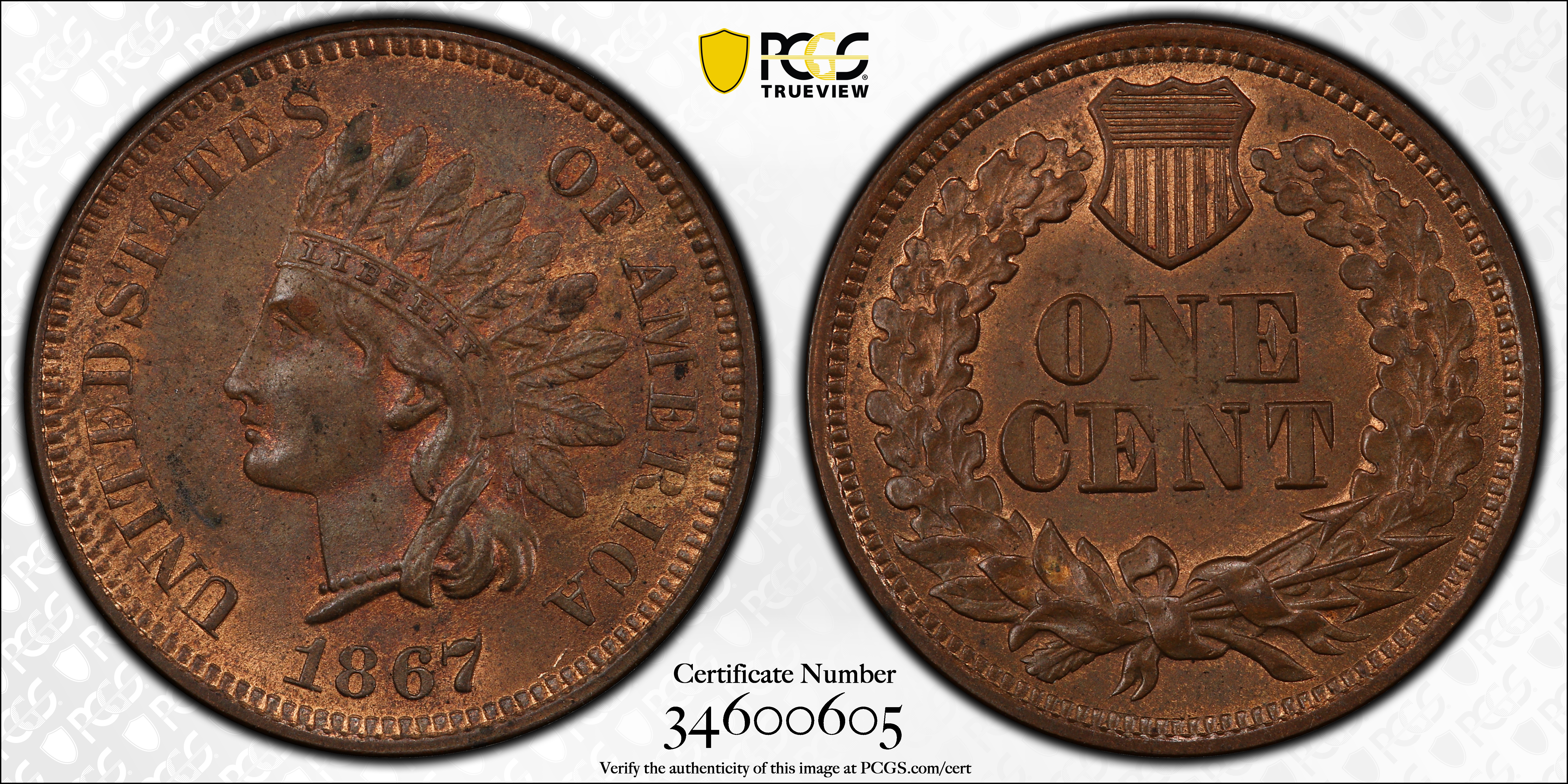 1867 1C, RB MS63RB Certification #34600605, PCGS #2089