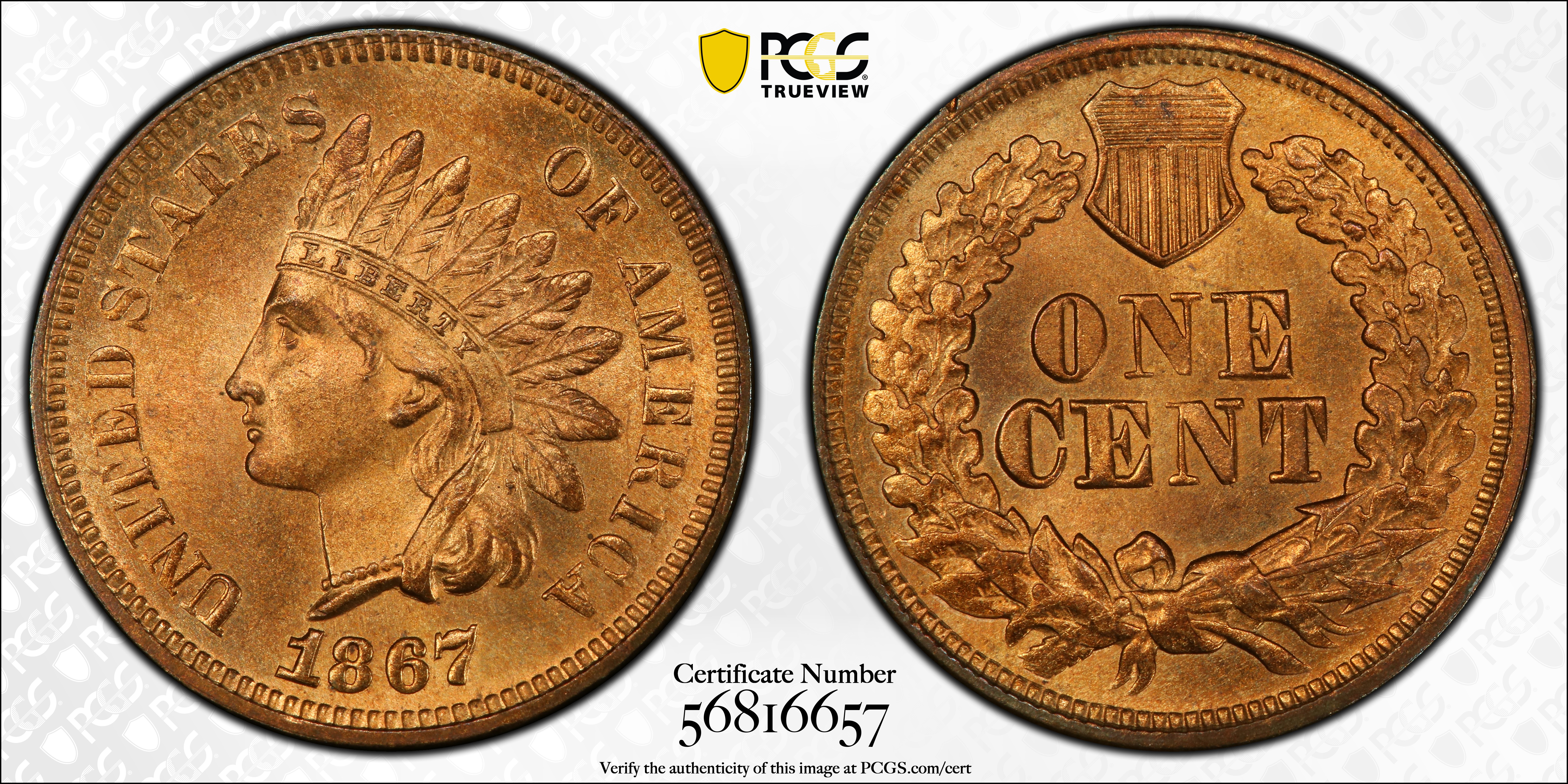 1867 1C, RD MS66RD Certification #56816657, PCGS #2090