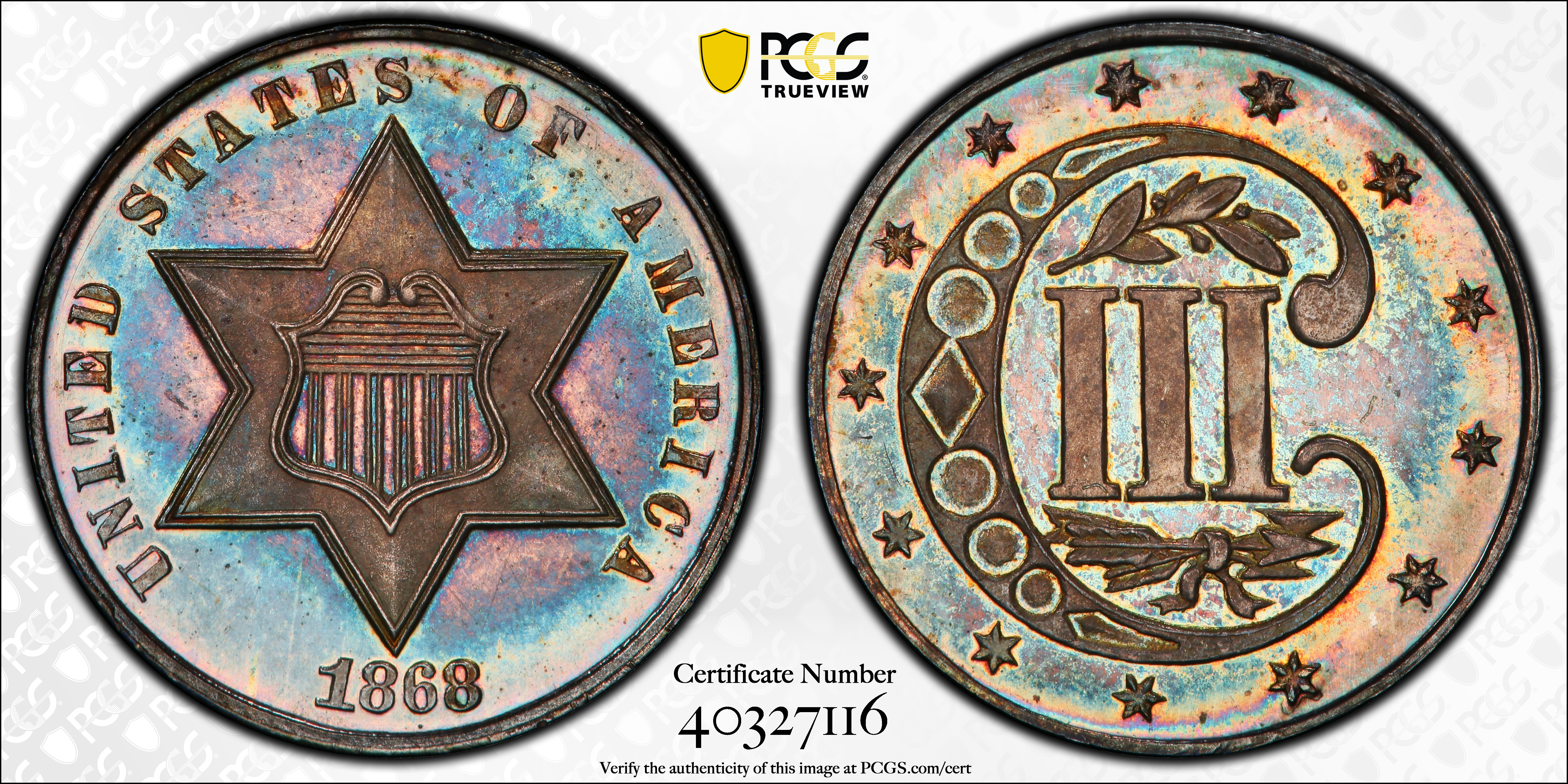 1868 3CS, CAM PR66+ CAM Certification #40327116, PCGS #83718