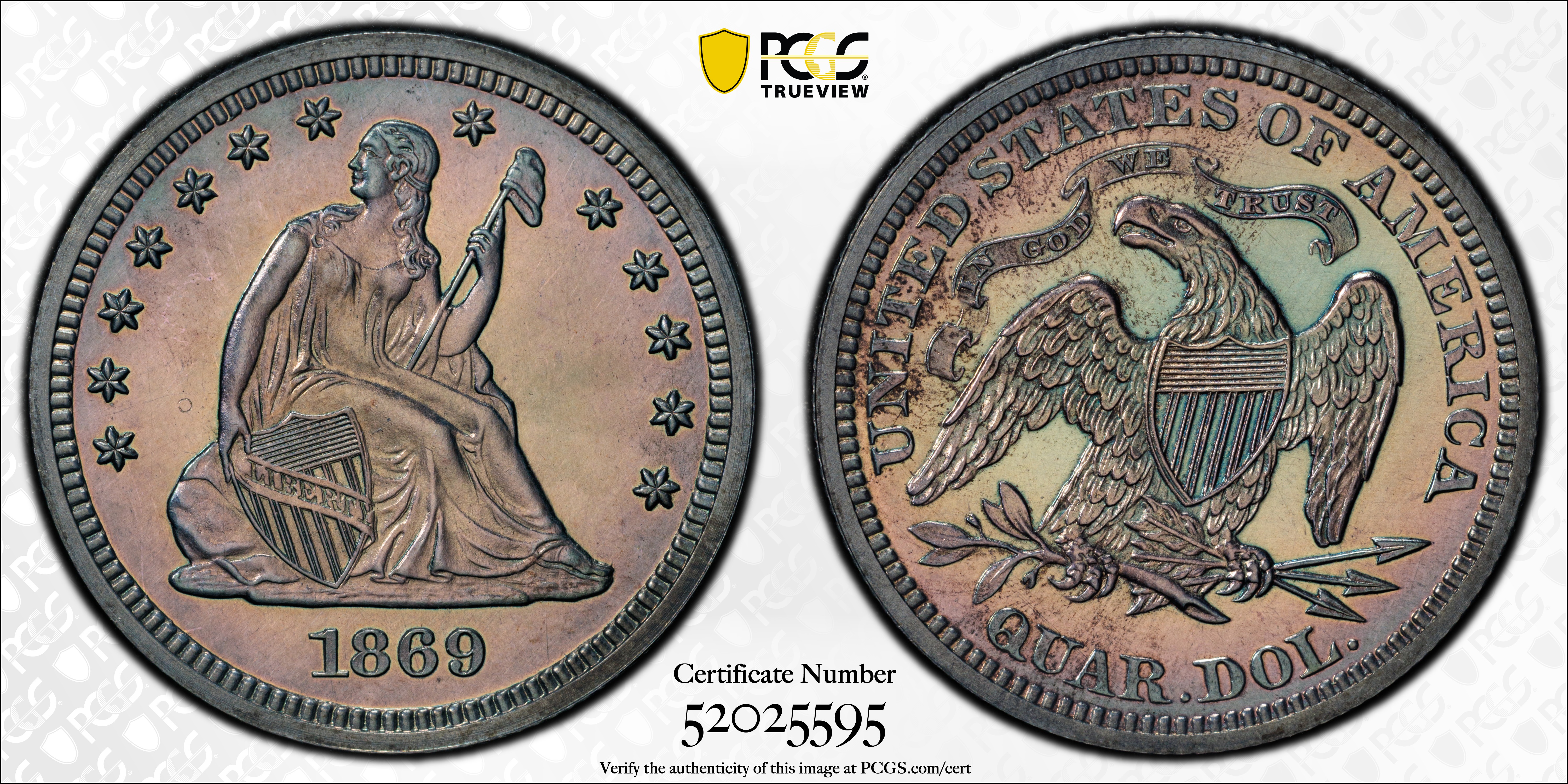 1869 25C PR63 Certification #52025595, PCGS #5568