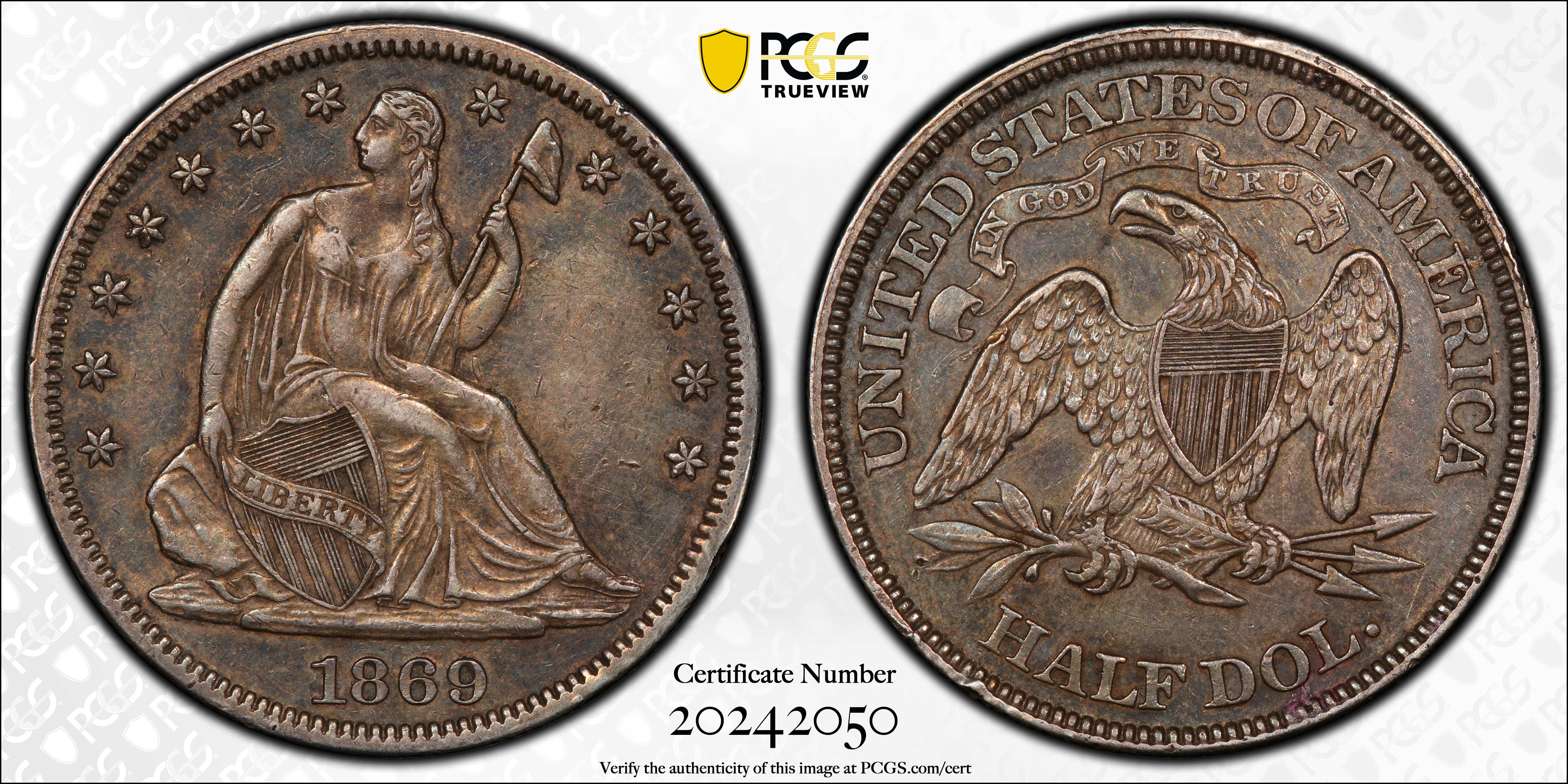 1869 50C XF45 Certification #20242050, PCGS #6325