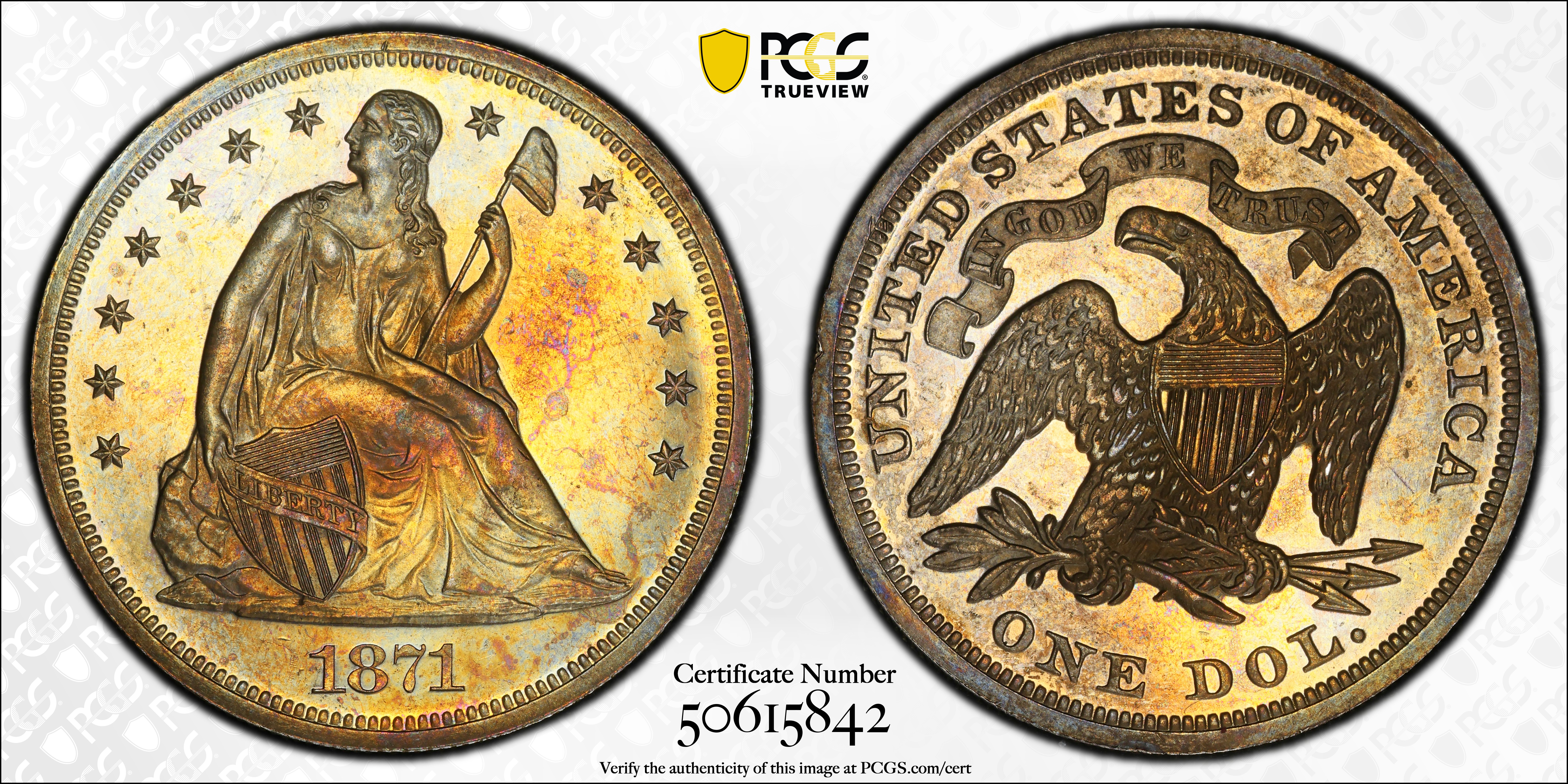 1871 $1 PR62 Certification #50615842, PCGS #7019