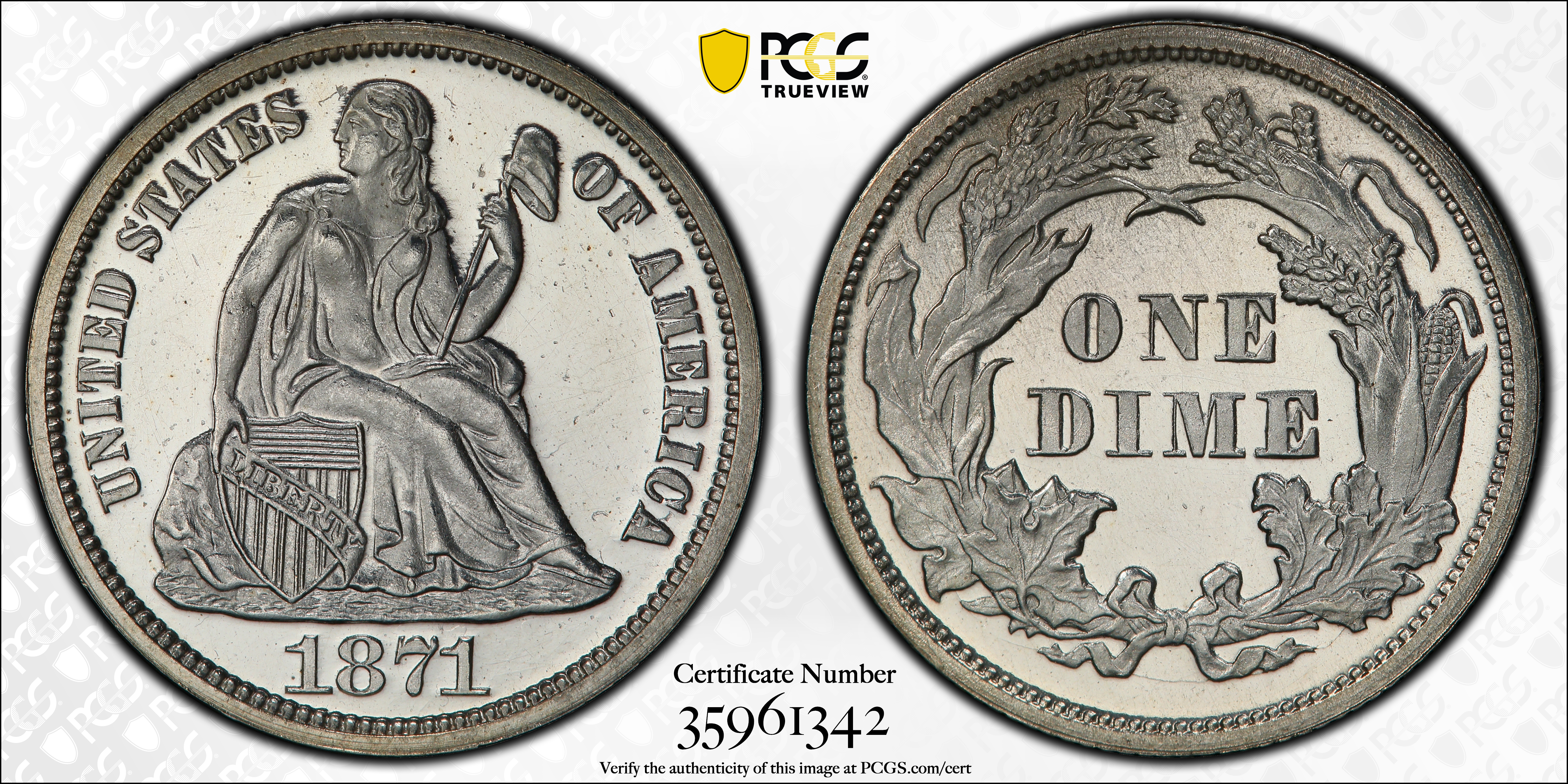 1871 10C, DCAM PR64DCAM Certification #35961342, PCGS #94764