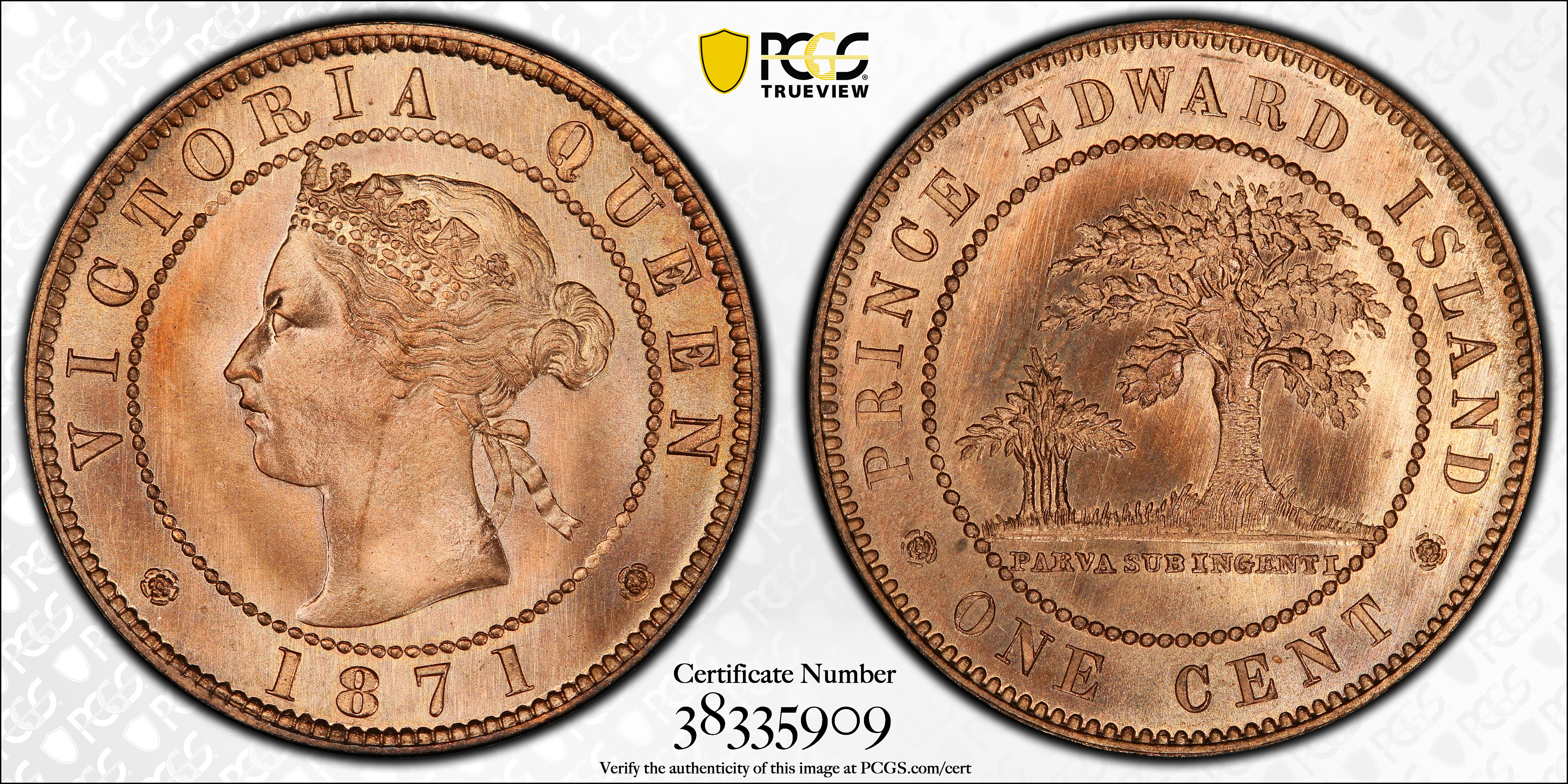 1871 1C Medallic ↑↑, RD MS67RD Certification #38335909, PCGS #33394