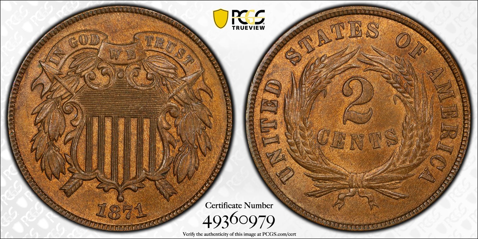 1871 2C, RB MS64RB Certification #49360979, PCGS #3610