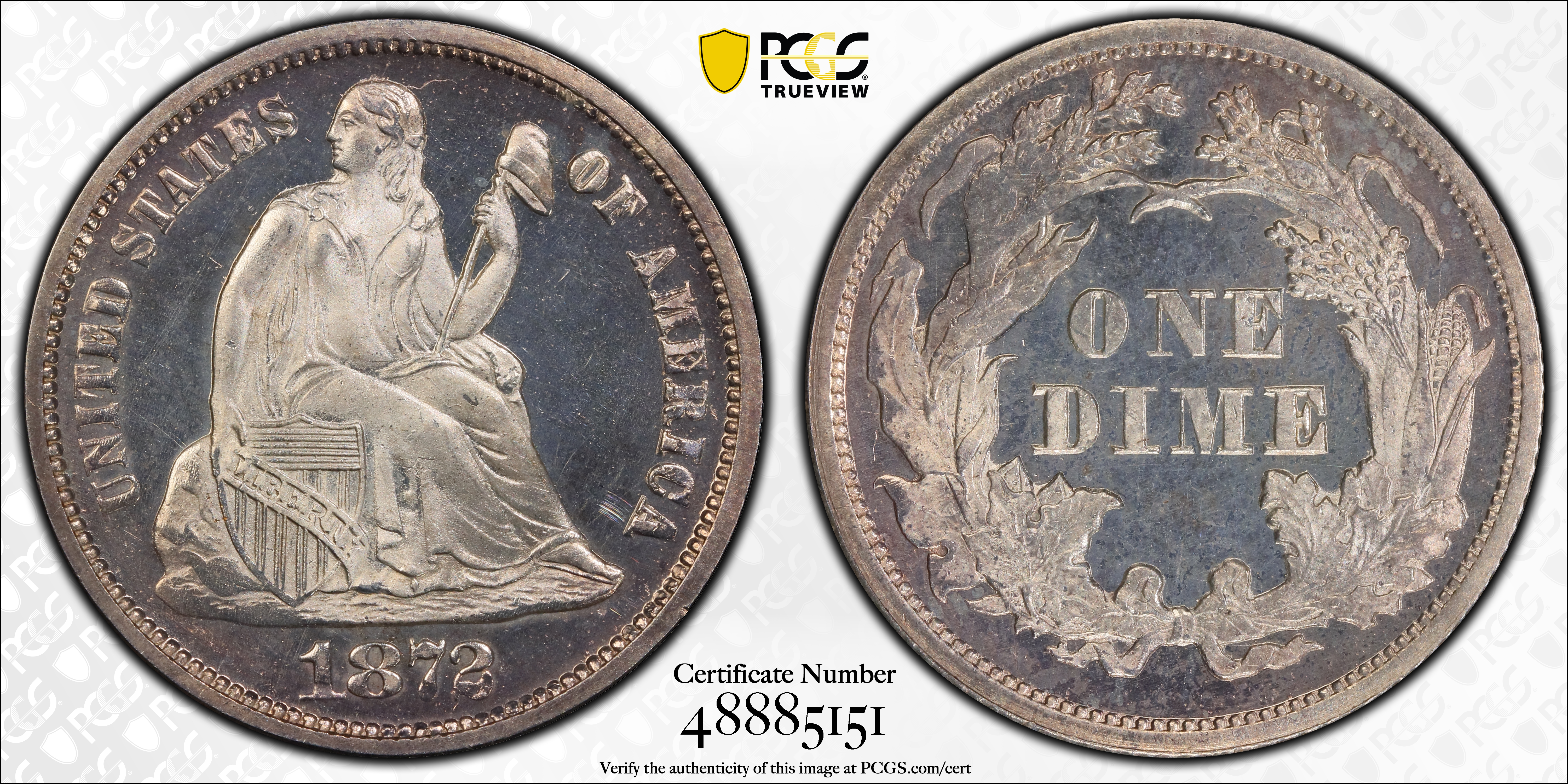 1872 10C, CAM PR67CAM Certification #48885151, PCGS #84765
