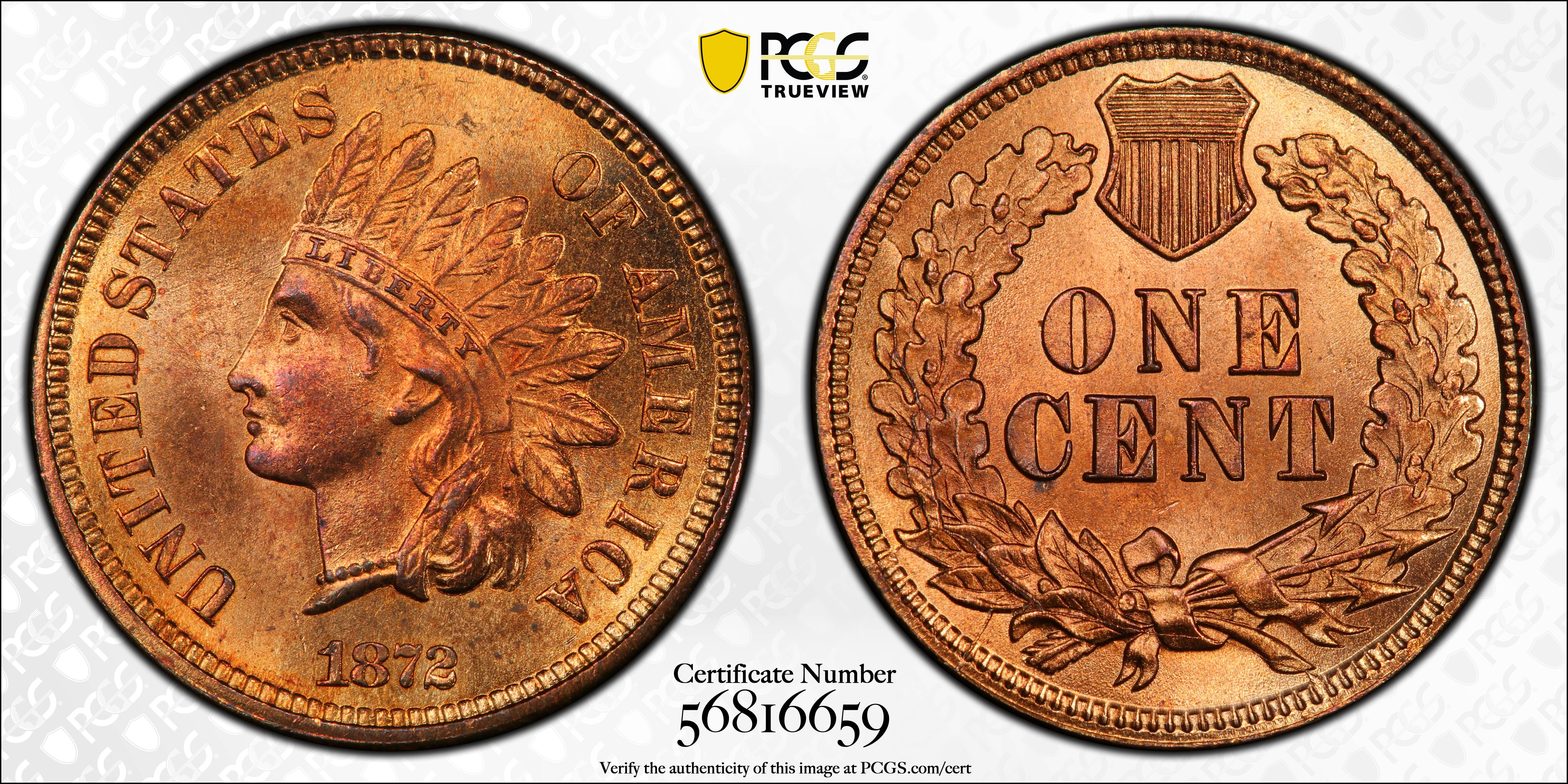 1872 1C, RD MS66RD Certification #56816659, PCGS #2105