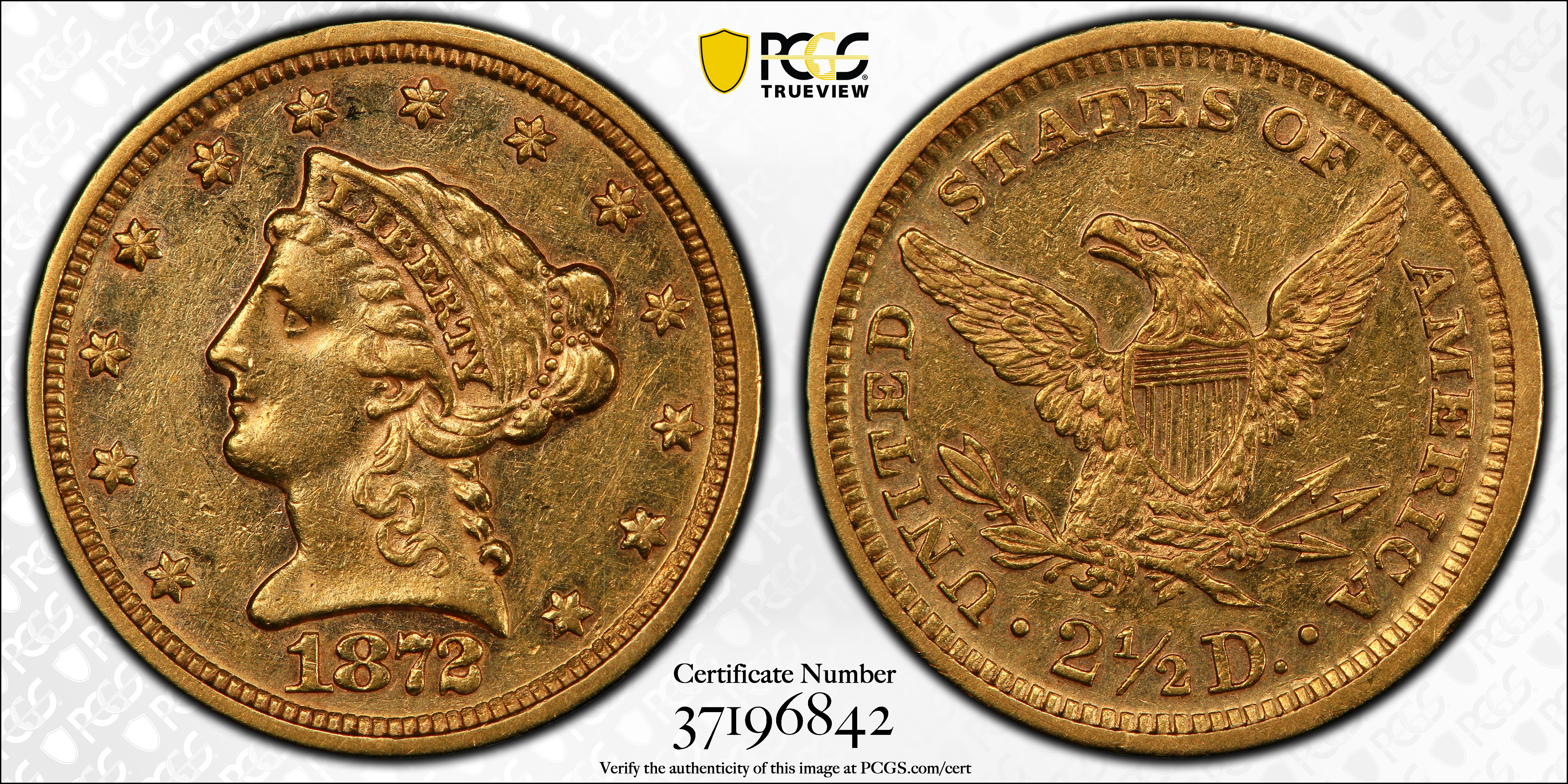 1872 $2.50 AU55 Certification #37196842, PCGS #7815