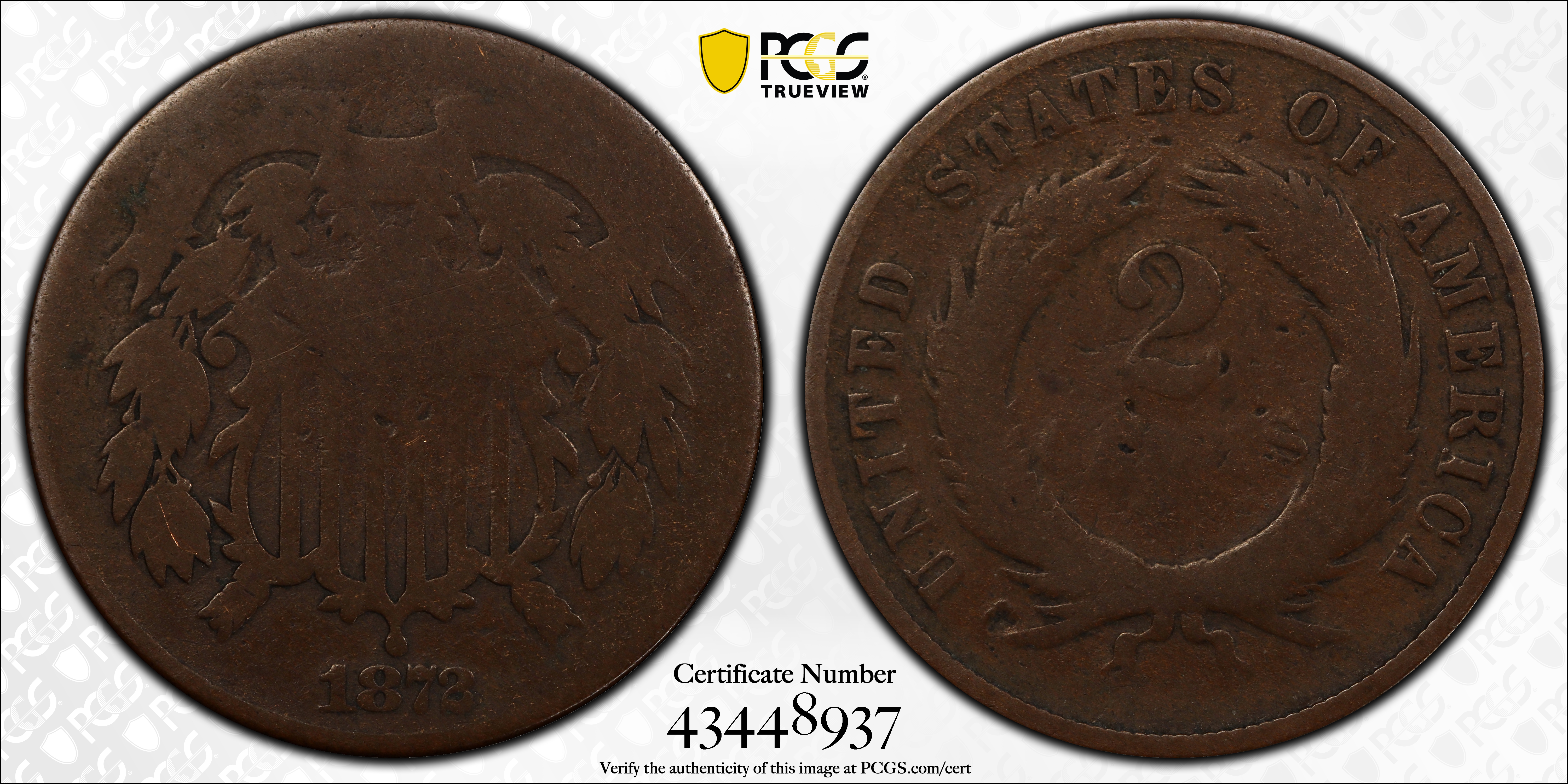 1872 2C, BN AG3BN Certification #43448937, PCGS #3612