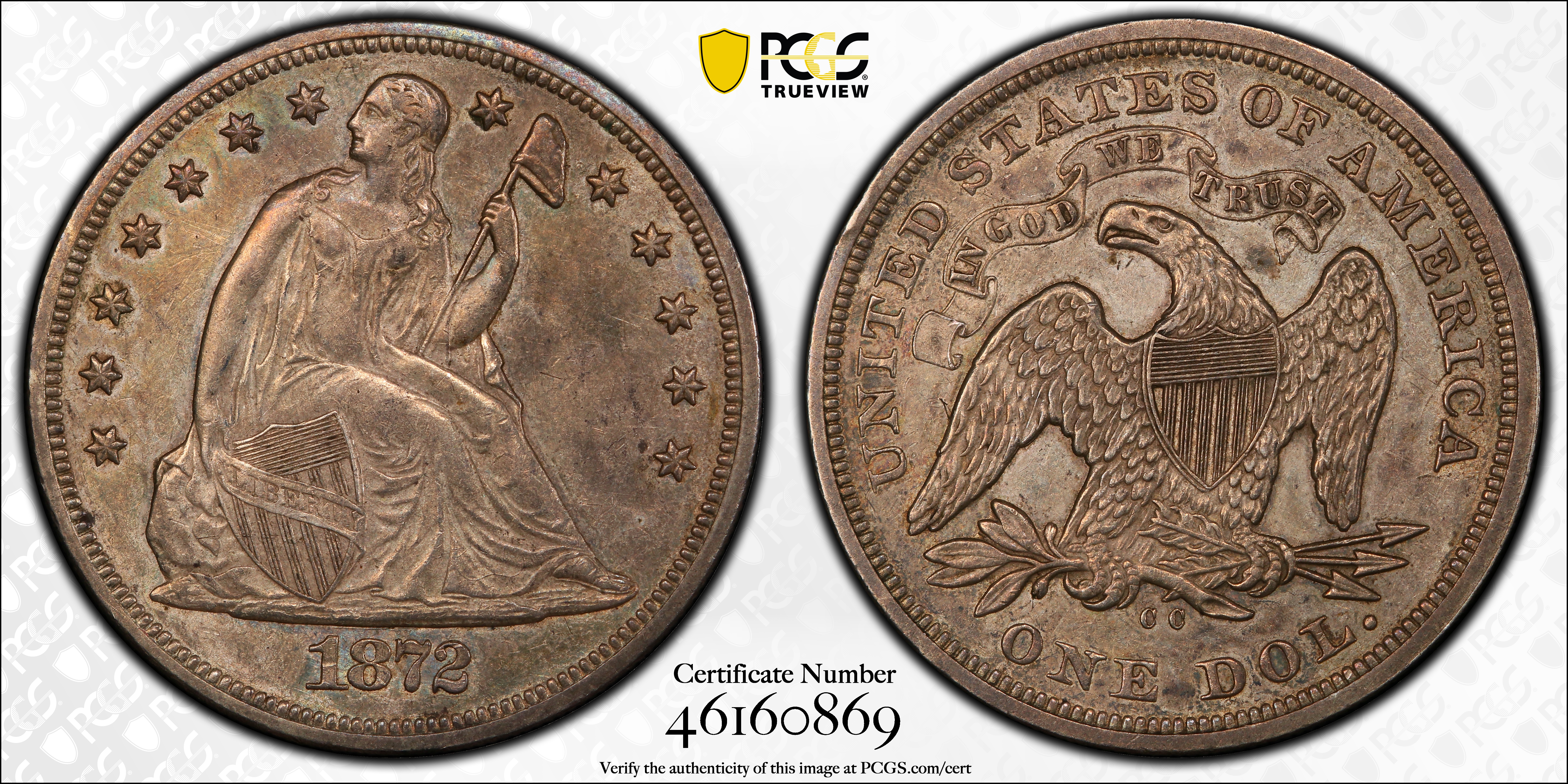 1872-CC $1 AU55 Certification #46160869, PCGS #6969
