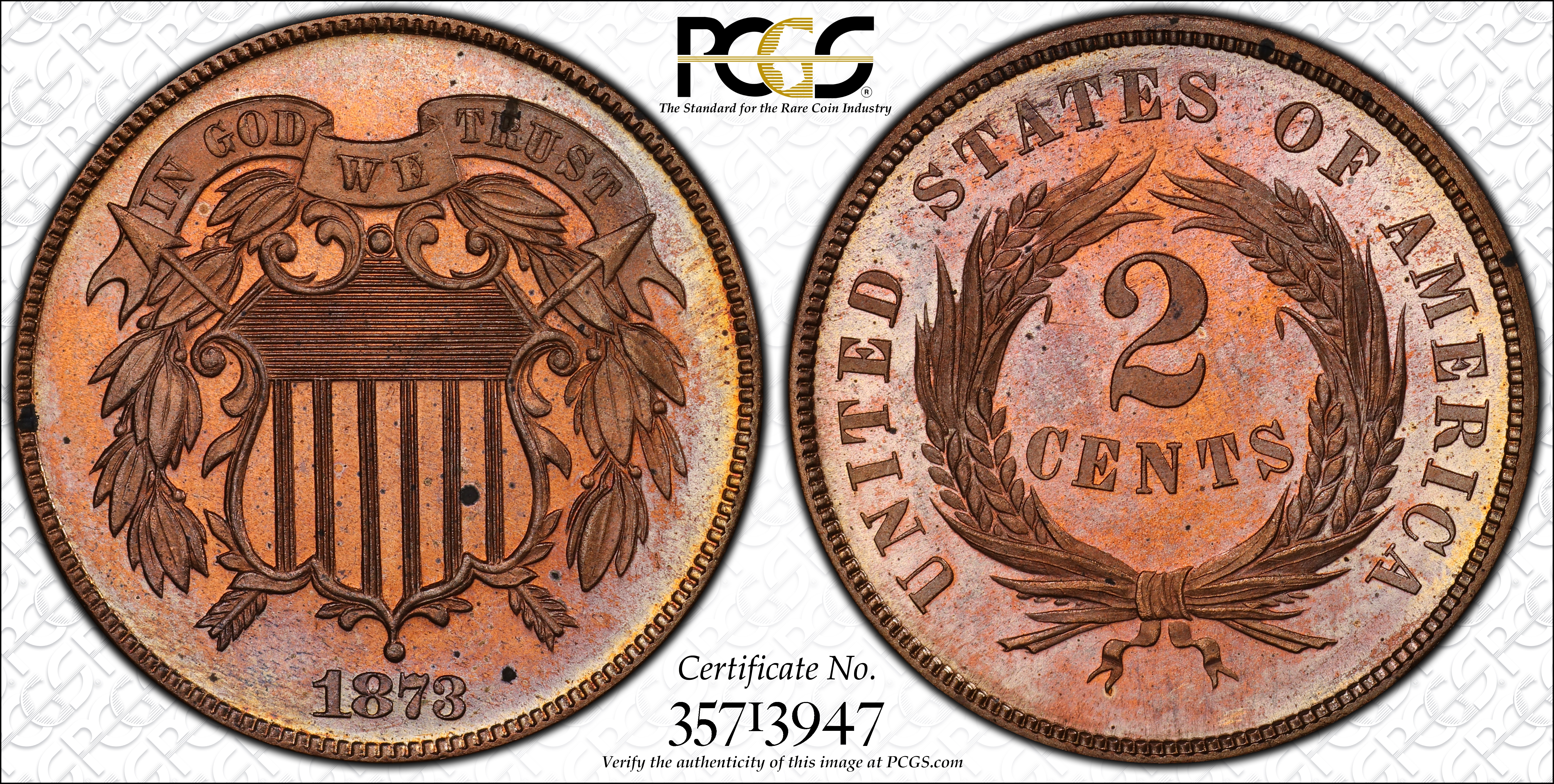 1873 2C Closed 3, RB PR63RB Certification #35713947, PCGS #3652