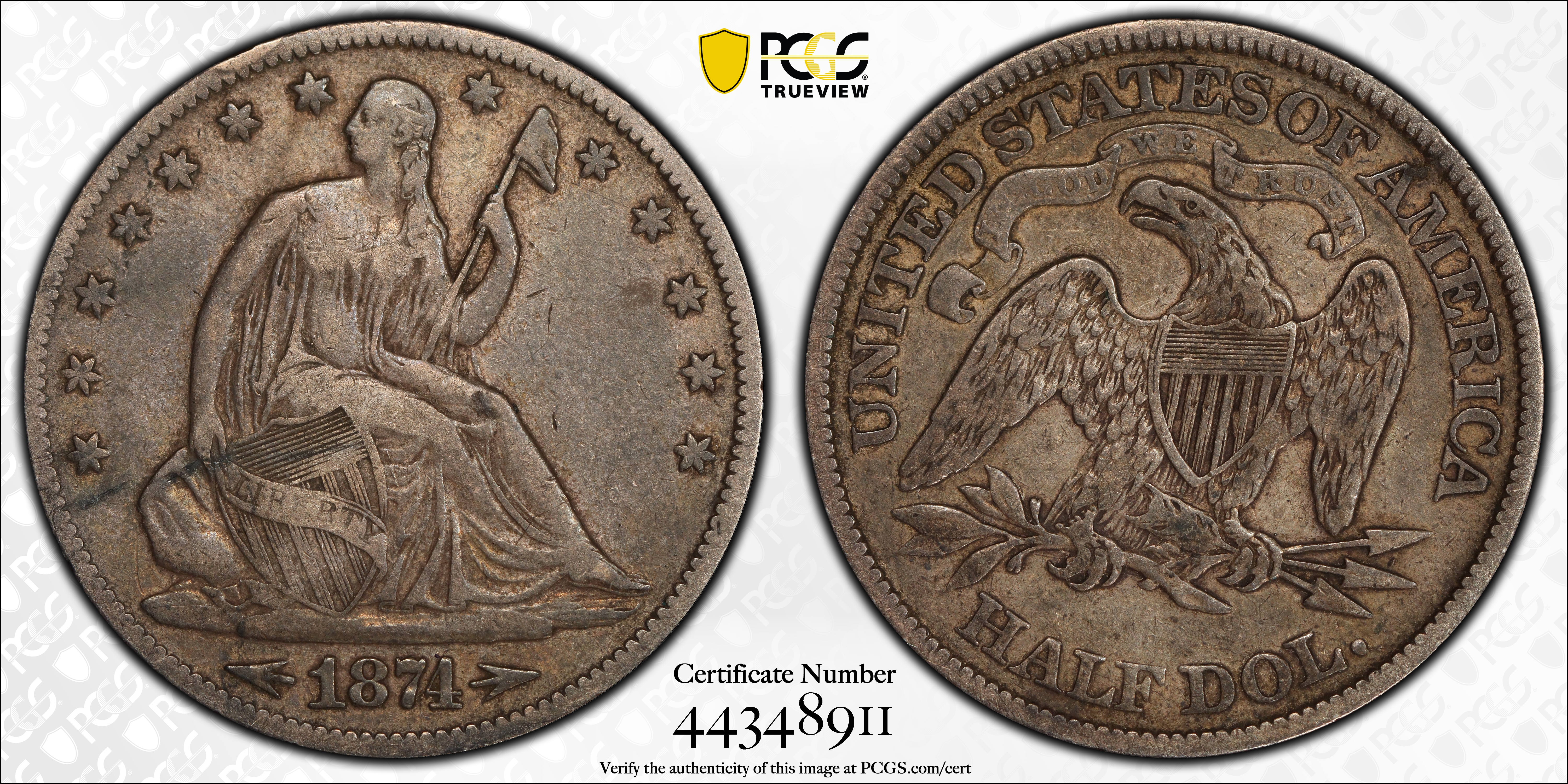 1874 50C VF20 Certification #44348911, PCGS #6346