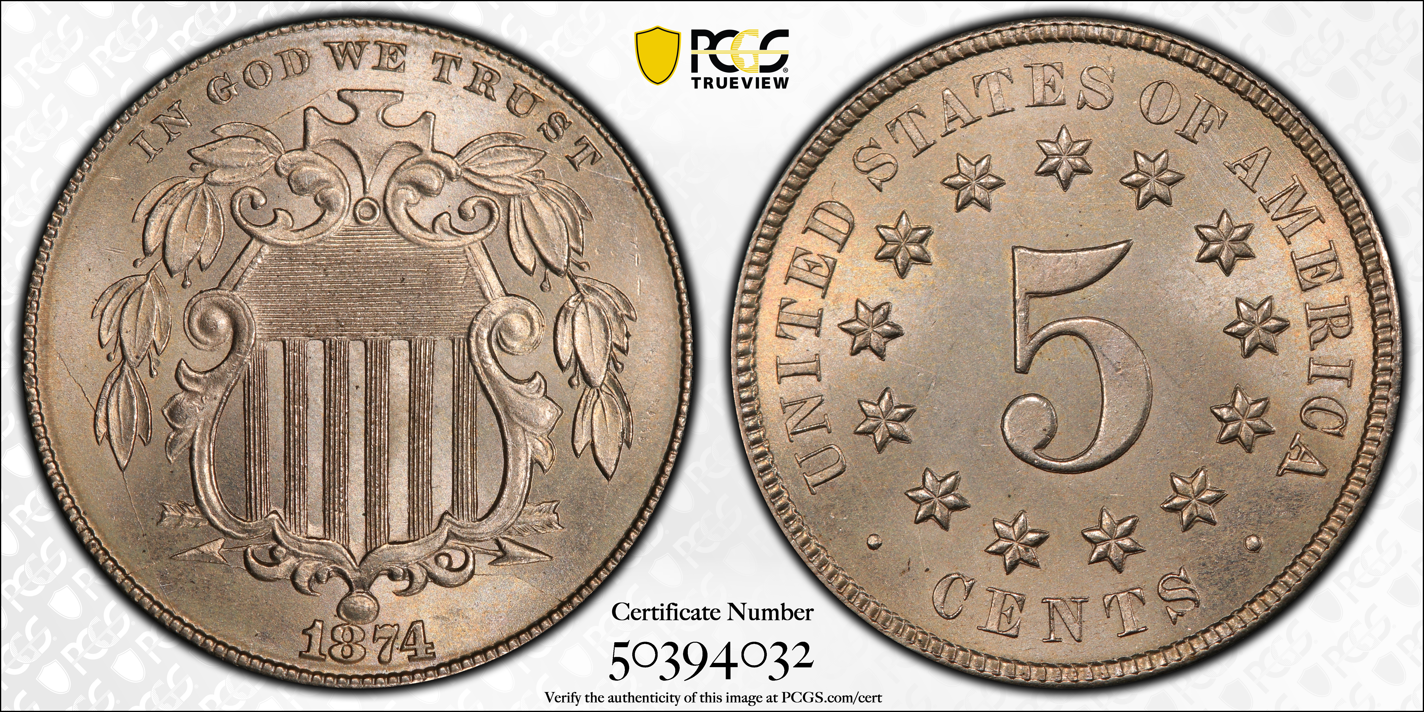 1874 5C MS66+ Certification #50394032, PCGS #3803
