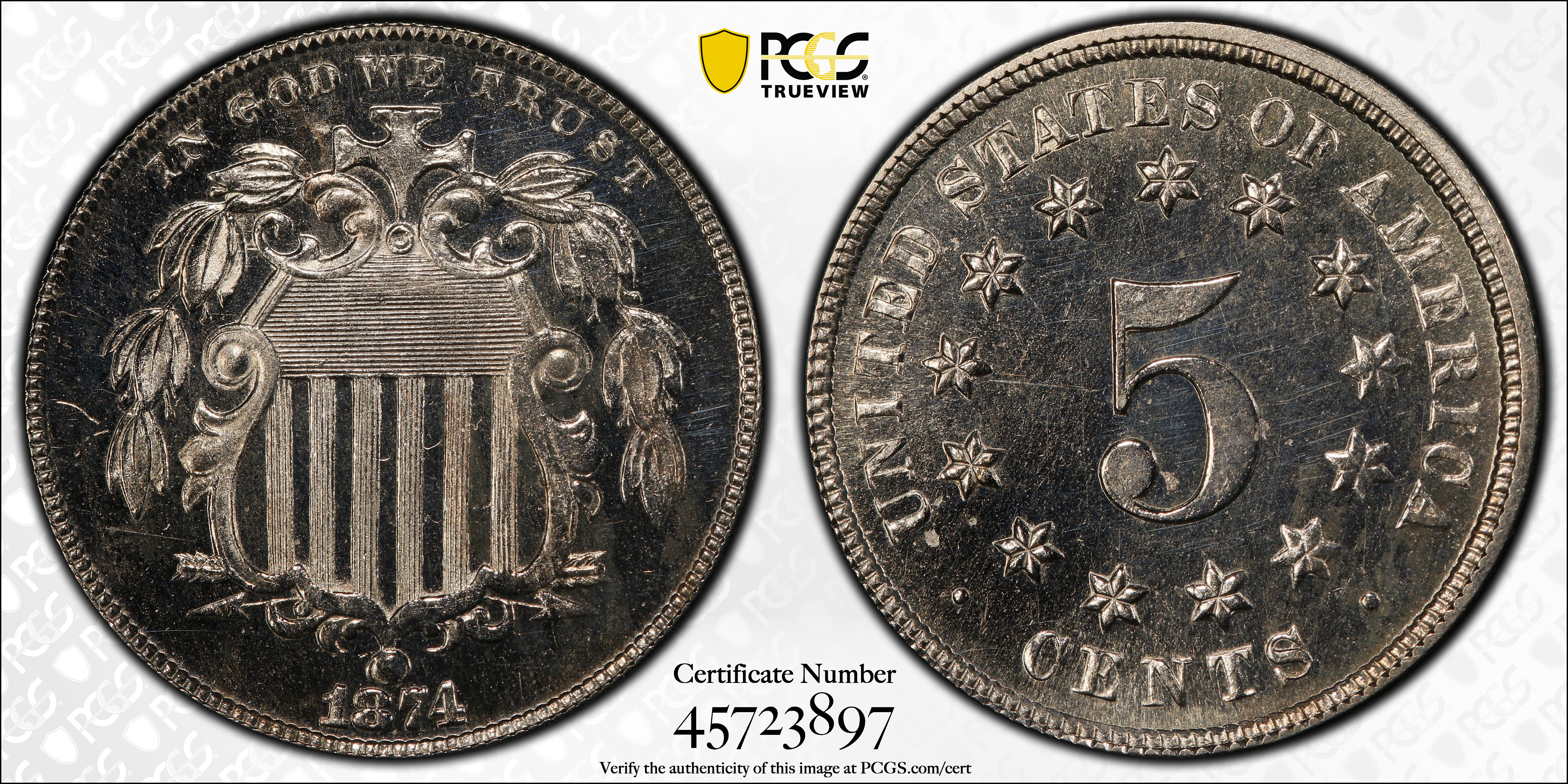 1874 5C PR63 Certification #45723897, PCGS #3828