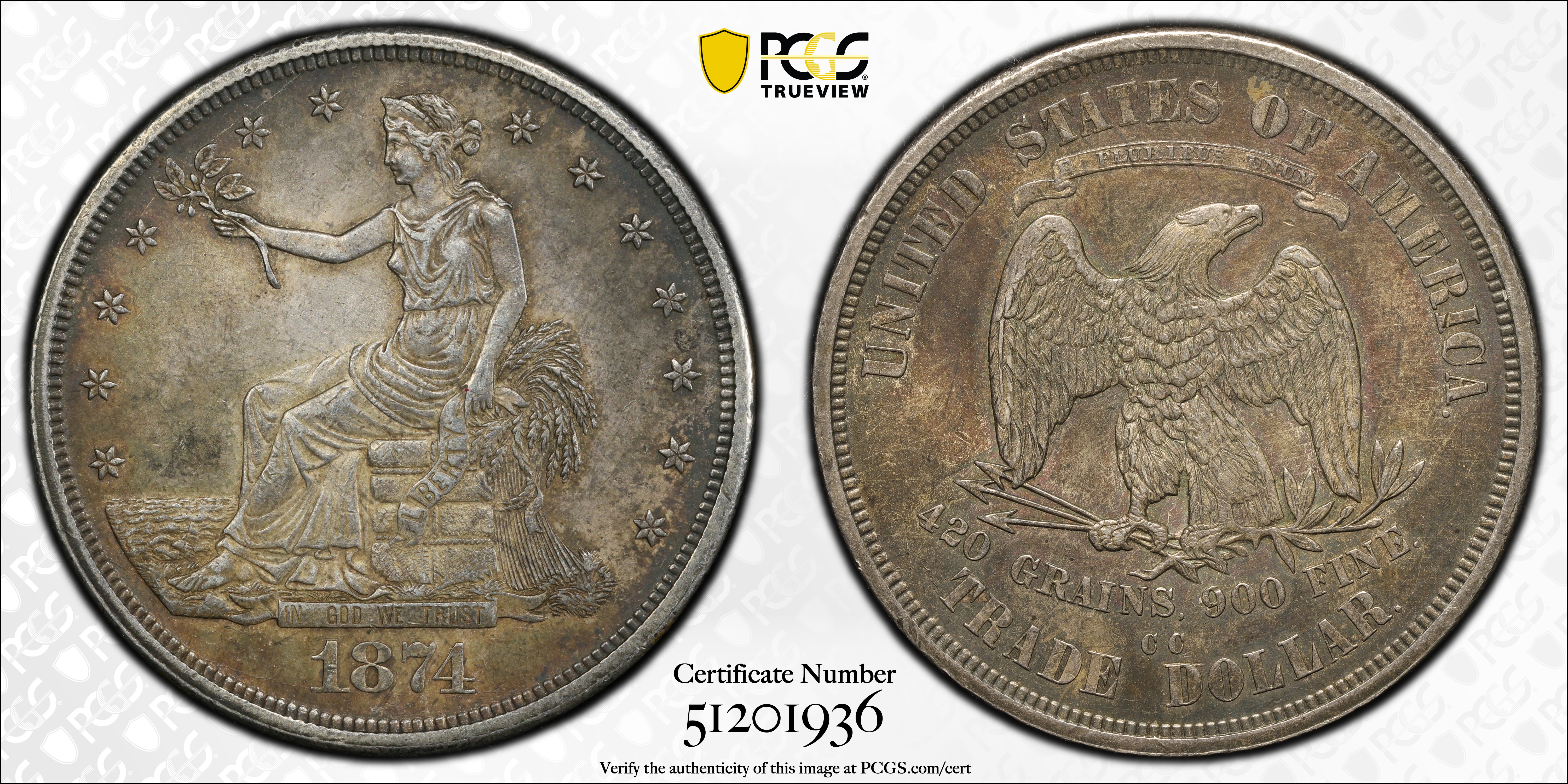 1874-CC T$1 AU58 Certification #51201936, PCGS #7035