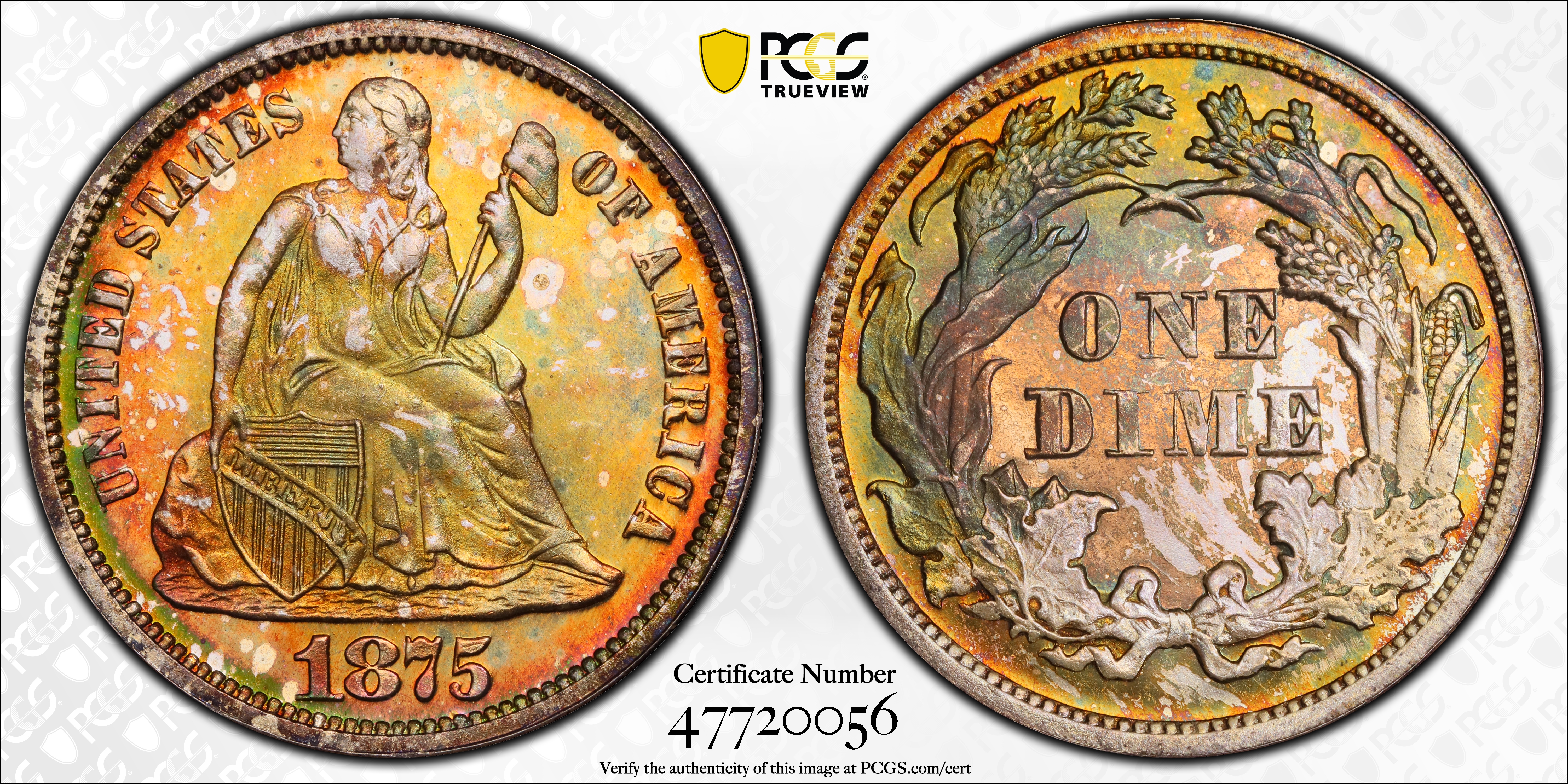 1875 10C PR67 Certification #47720056, PCGS #4772