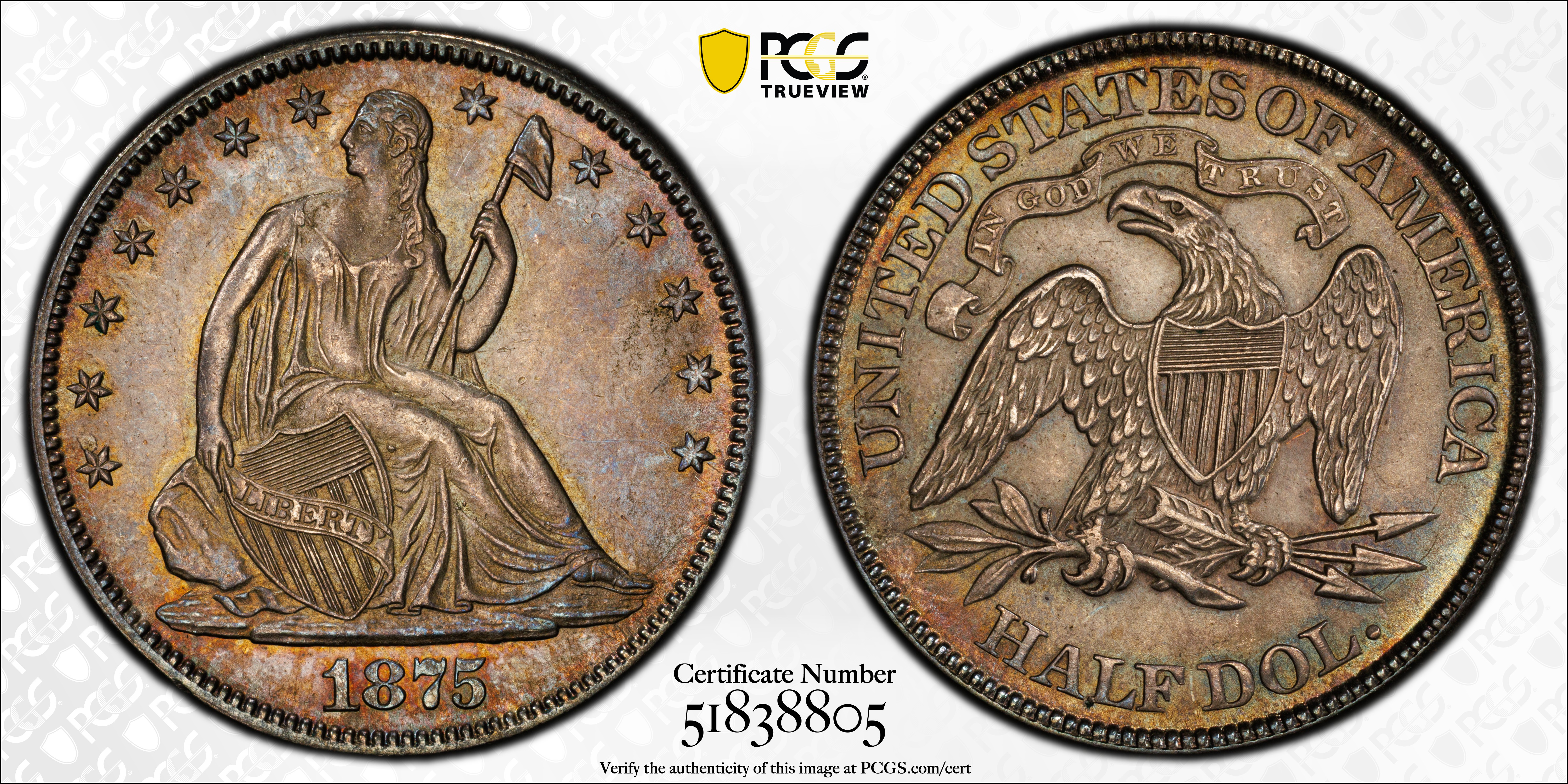 1875 50C AU58 Certification #51838805, PCGS #6349