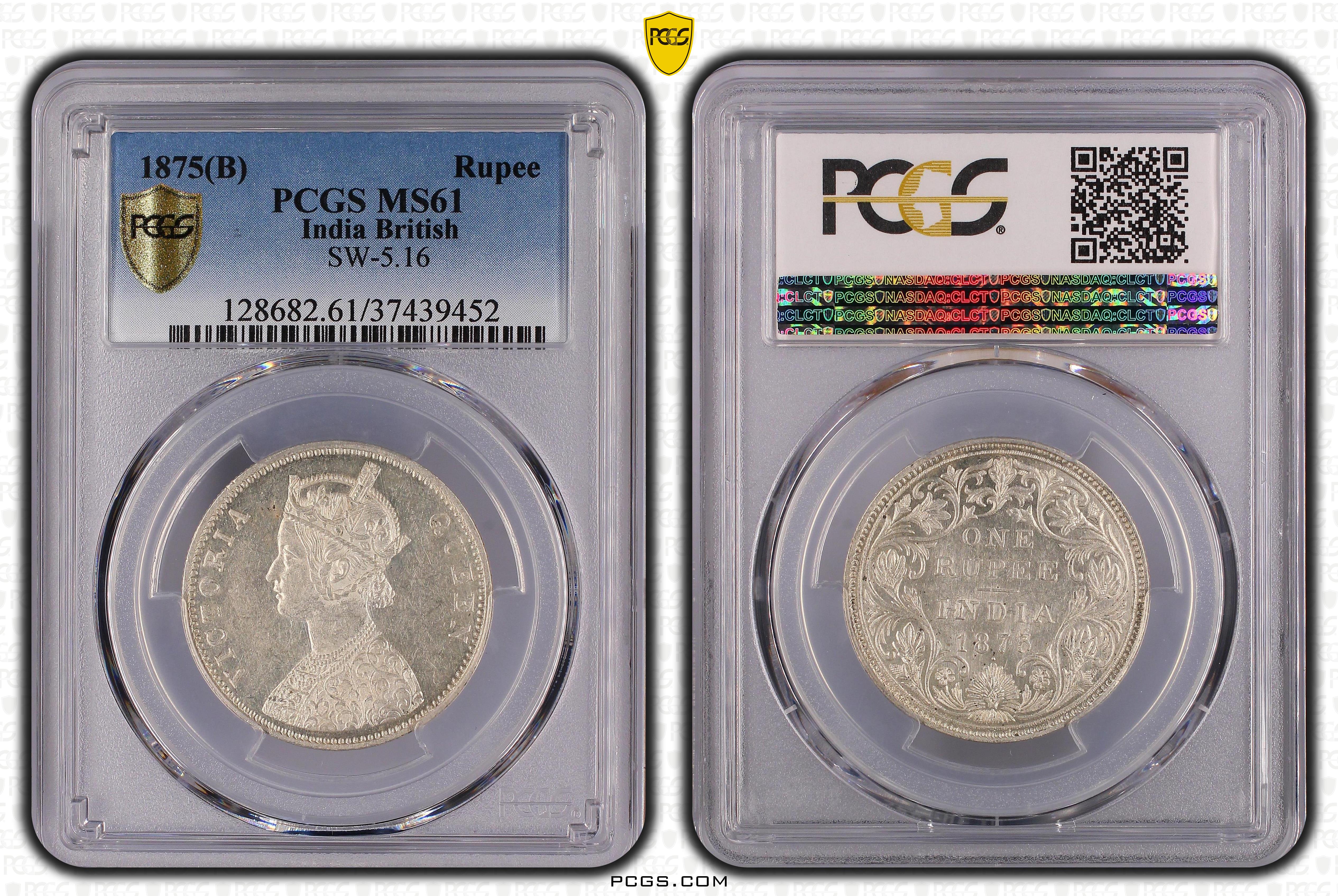 1875(B) Rupee SW-5.16 MS61 Certification #37439452, PCGS #128682