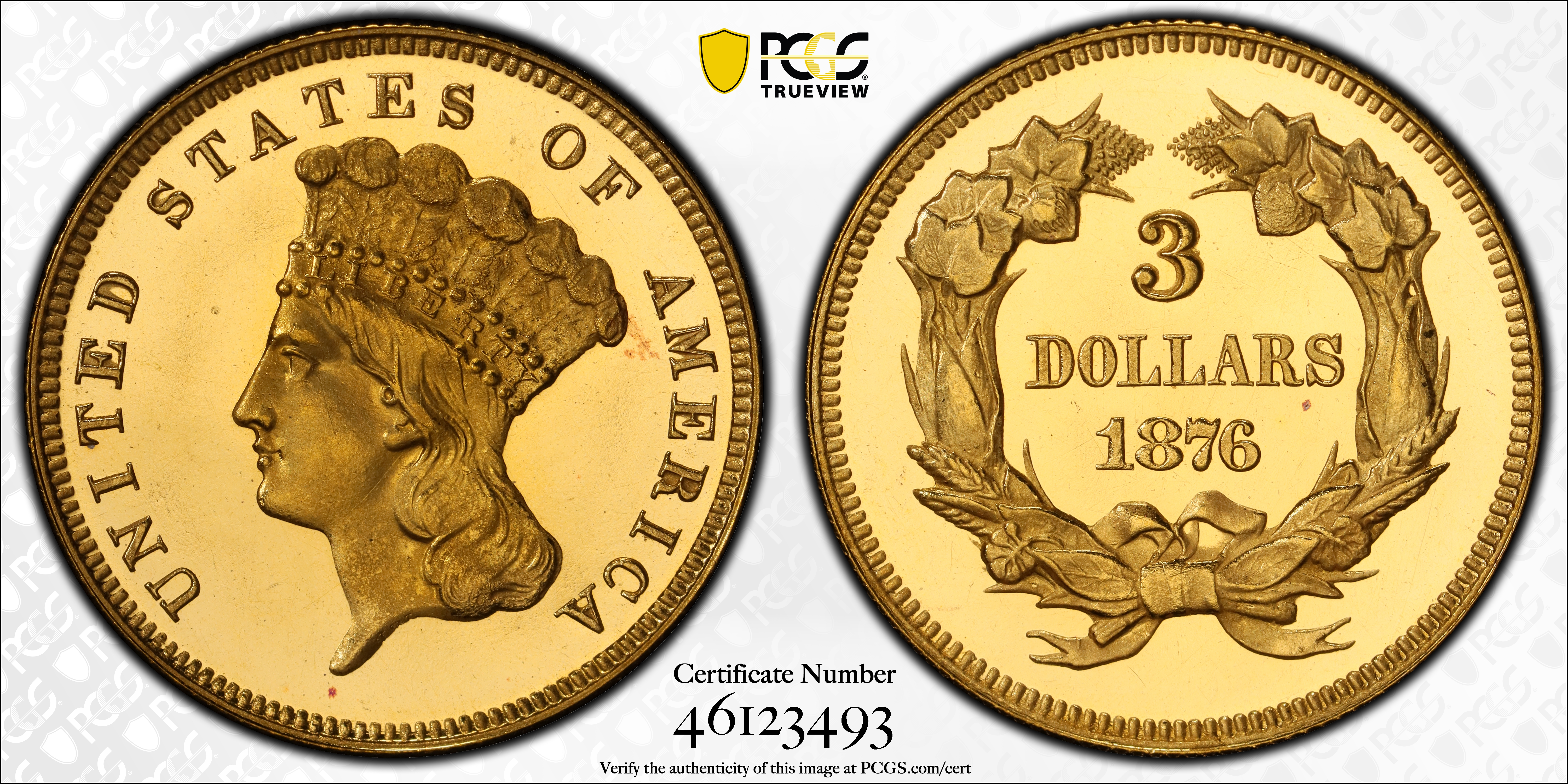 1876 $3, DCAM PR66+ DCAM Certification #46123493, PCGS #98040