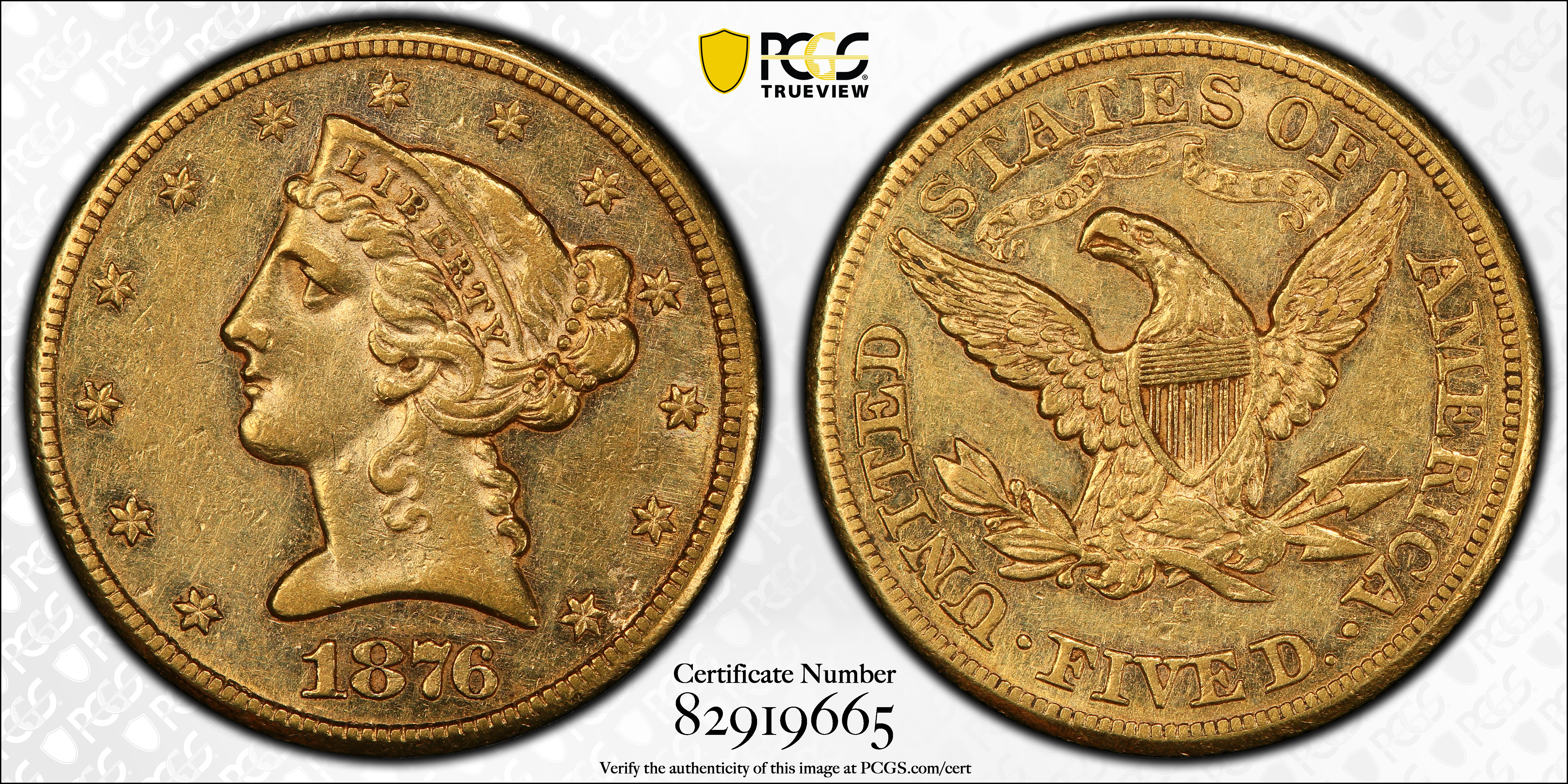 1876-CC $5 AU55 Certification #82919665, PCGS #8340