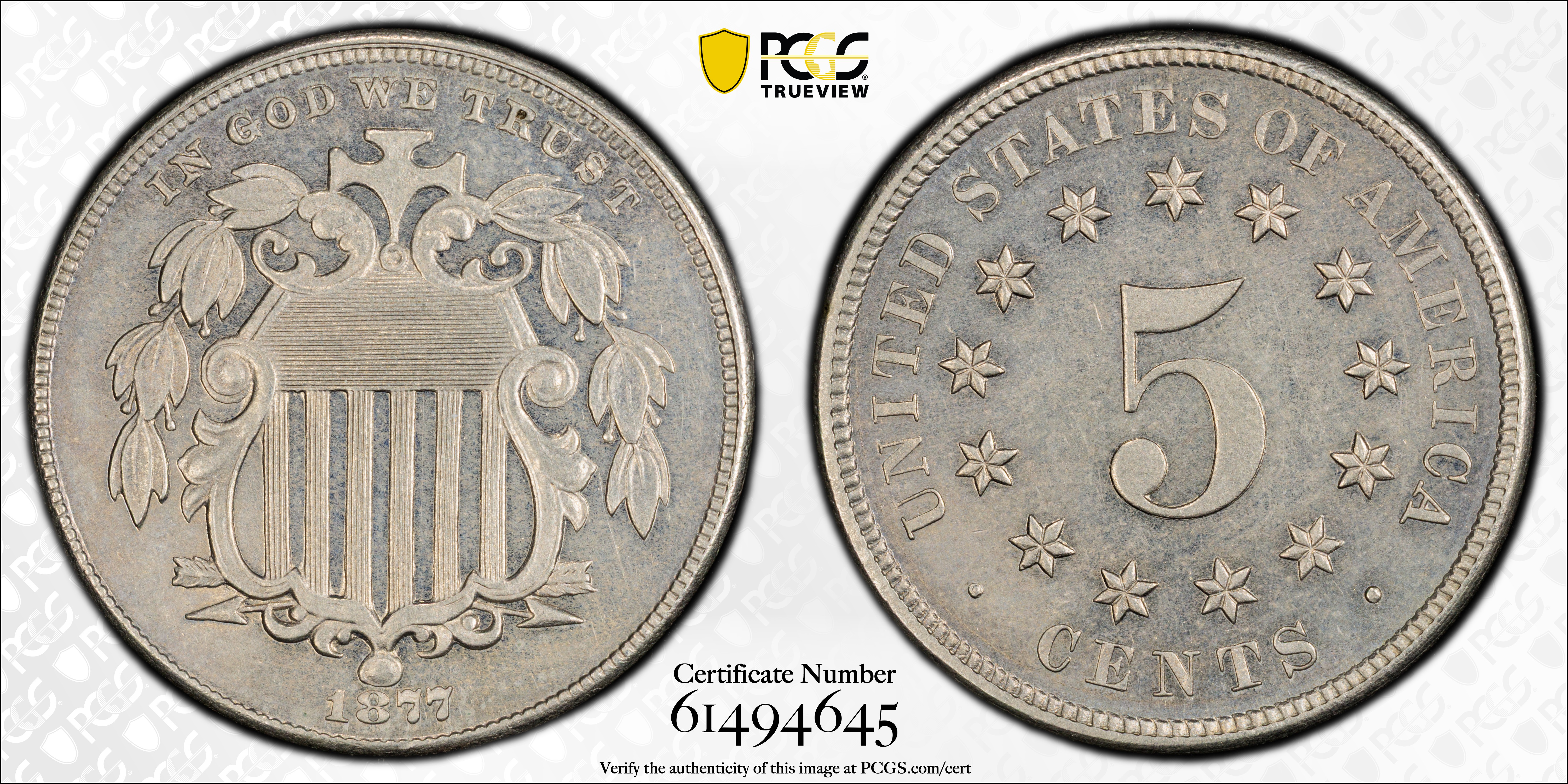 1877 5C PR64 Certification #61494645, PCGS #3831