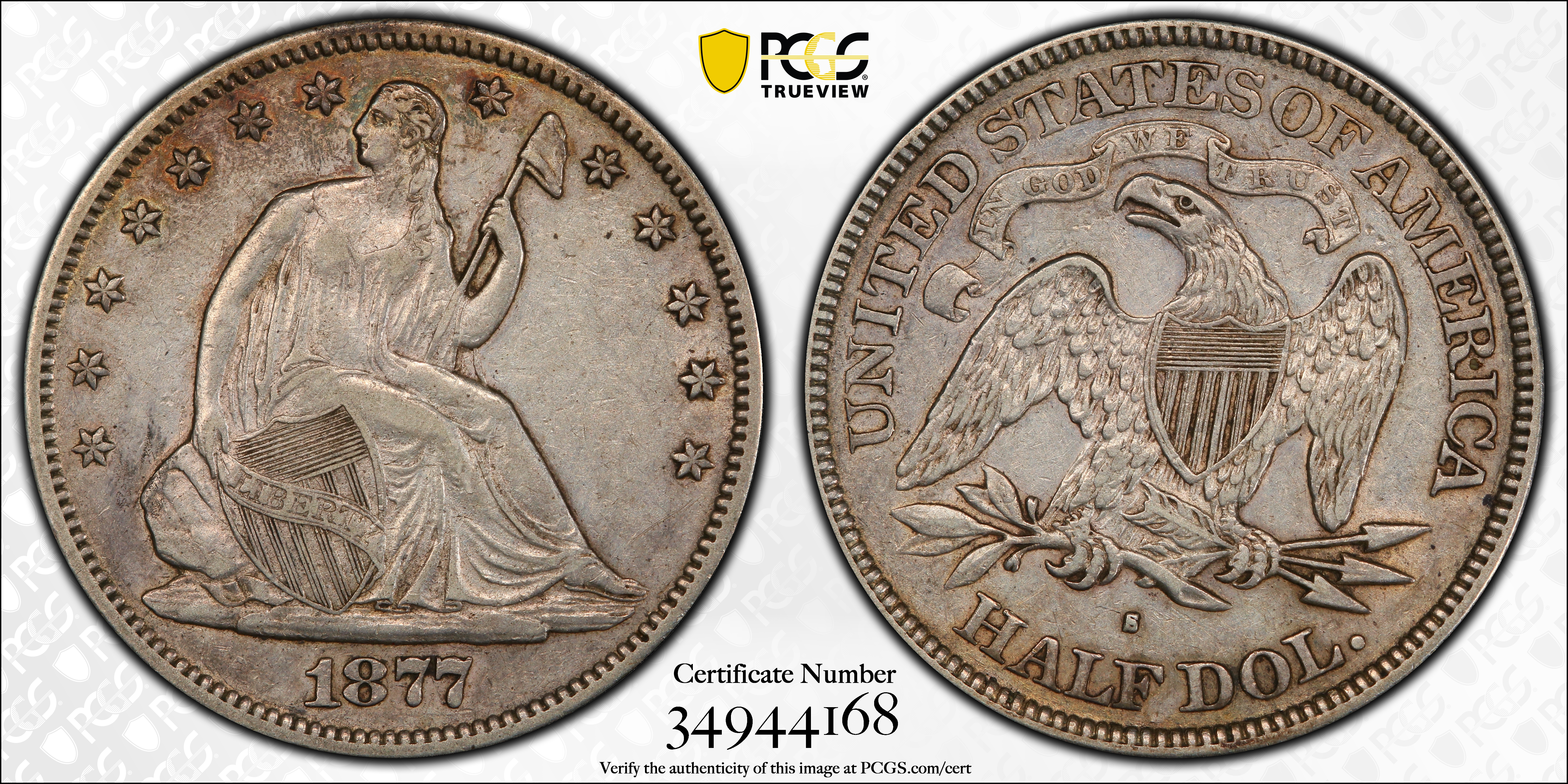1877-S 50C WB-5 Type-1 Micro S XF40 Certification #34944168, PCGS #800990