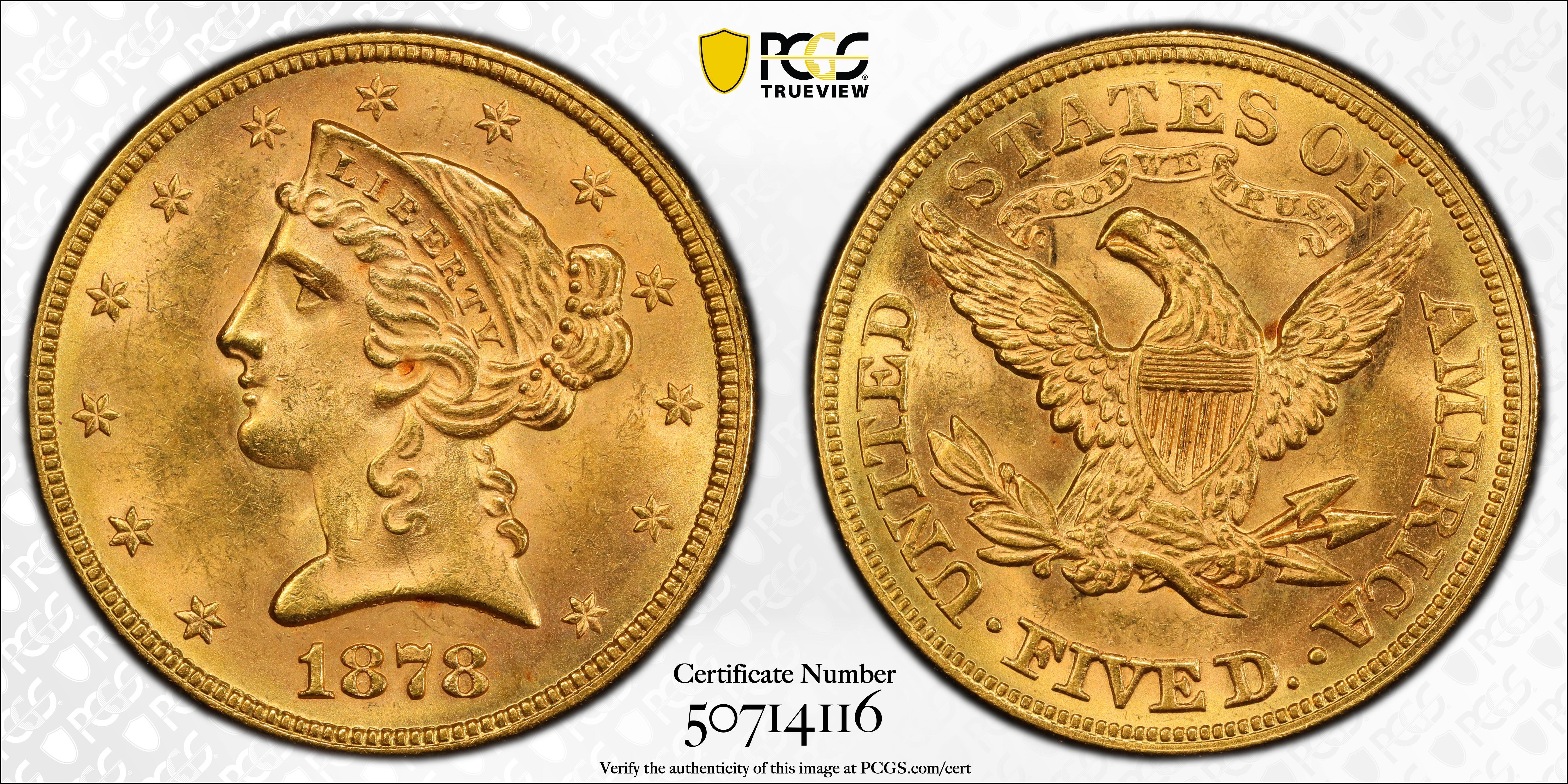 1878 $5 MS64 Certification #50714116, PCGS #8345