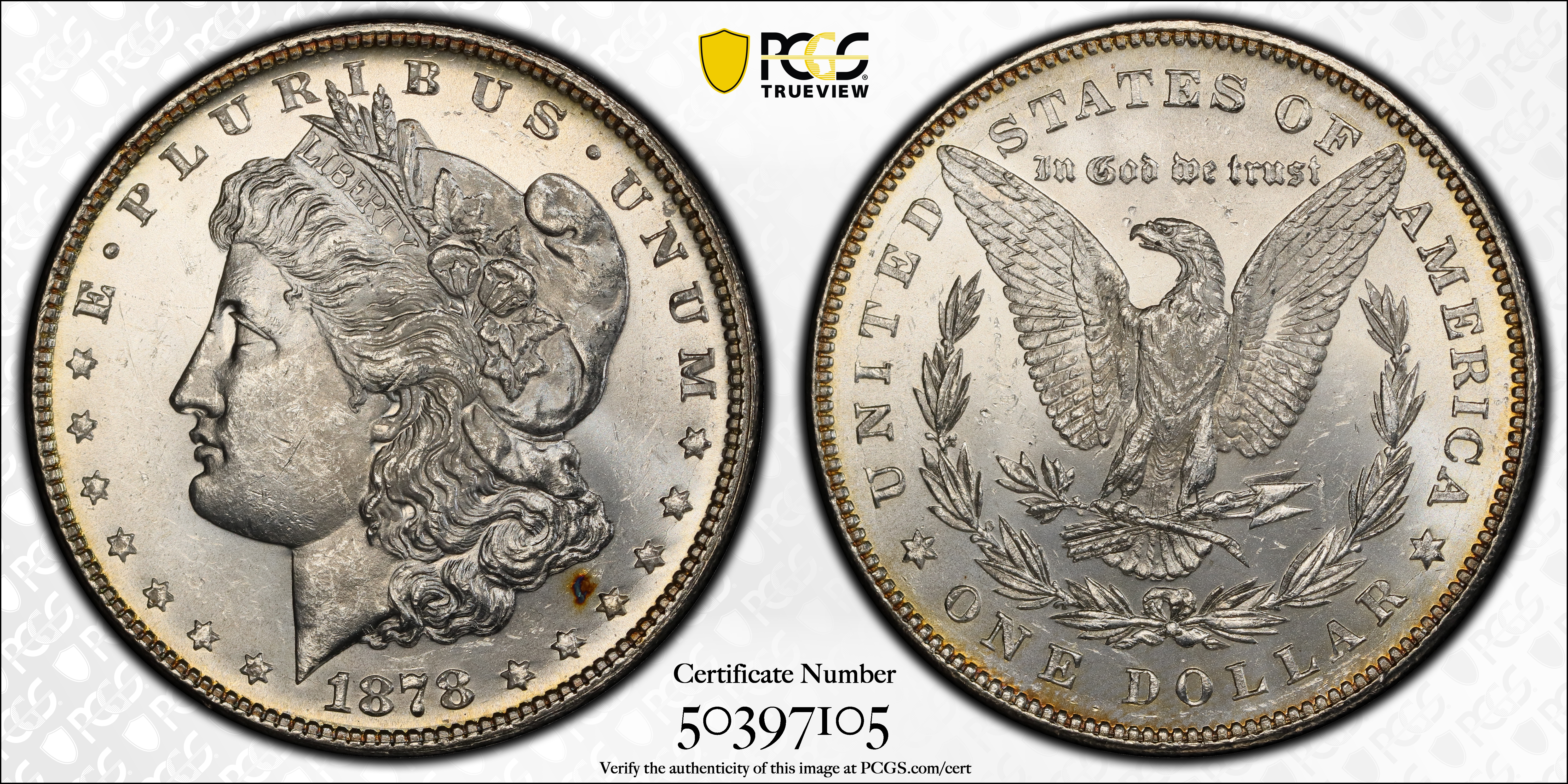 1878 7/8TF $1 Strong MS62 Certification #50397105, PCGS #7078