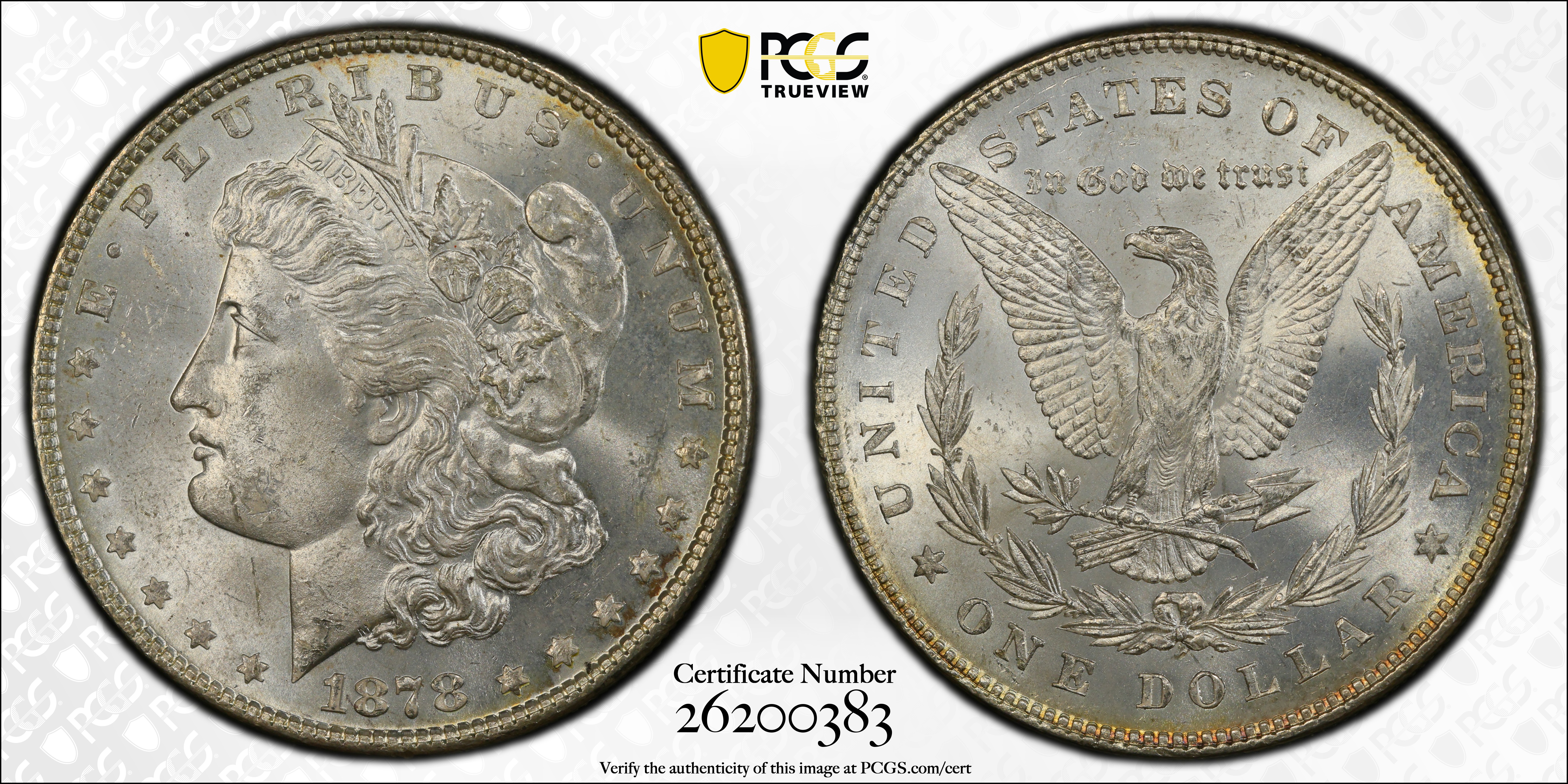 1878 7TF $1 R78, VAM 117, Tripled Star TOP 100 MS63 Certification #26200383, PCGS #133836