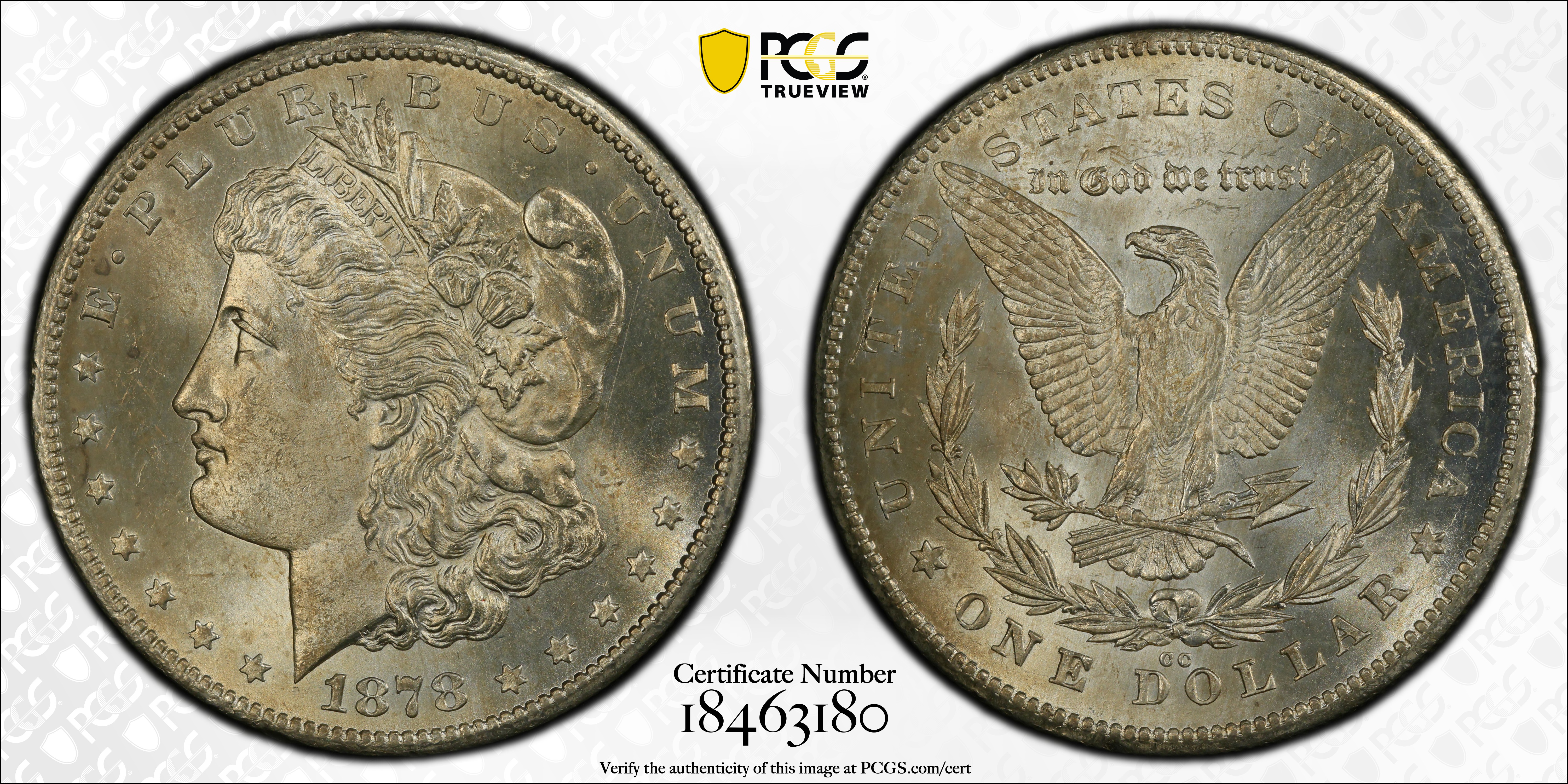 1878-CC $1 VAM 11, Lines in Wing TOP 100 MS64 Certification #18463180, PCGS #133843