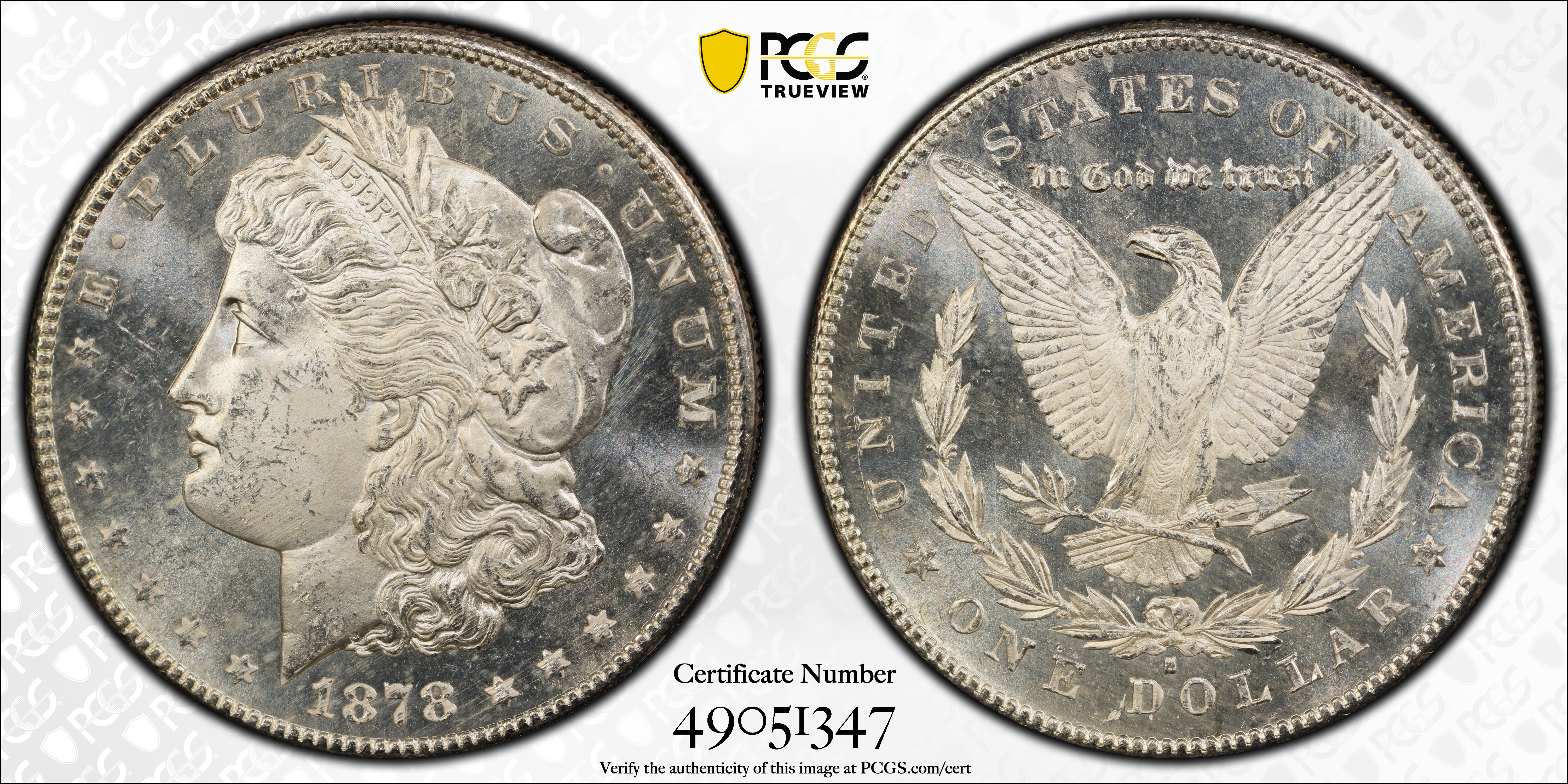 1878-S $1, PL MS64PL Certification #49051347, PCGS #7083