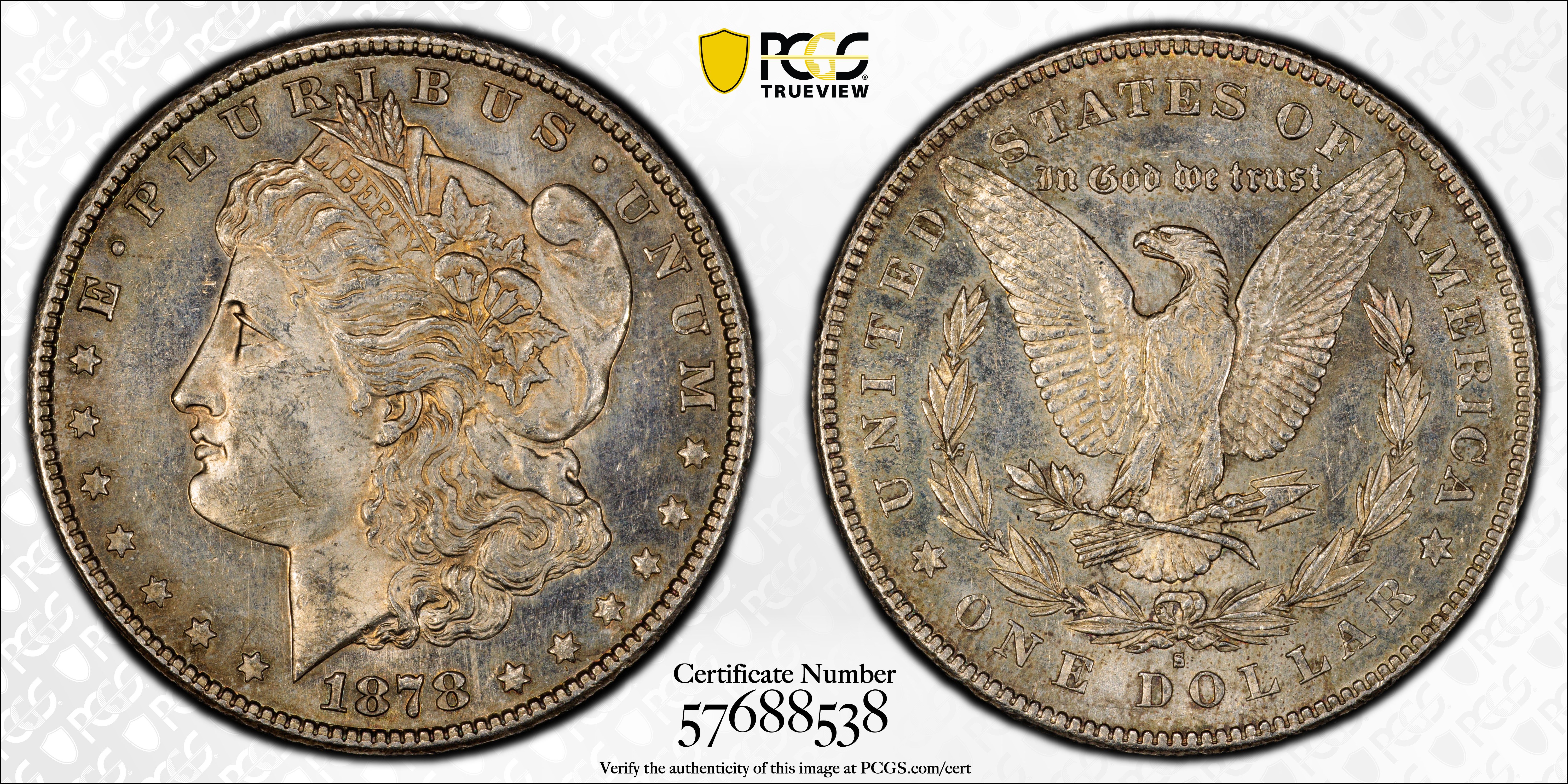 1878-S $1 MS62 Certification #57688538, PCGS #7082