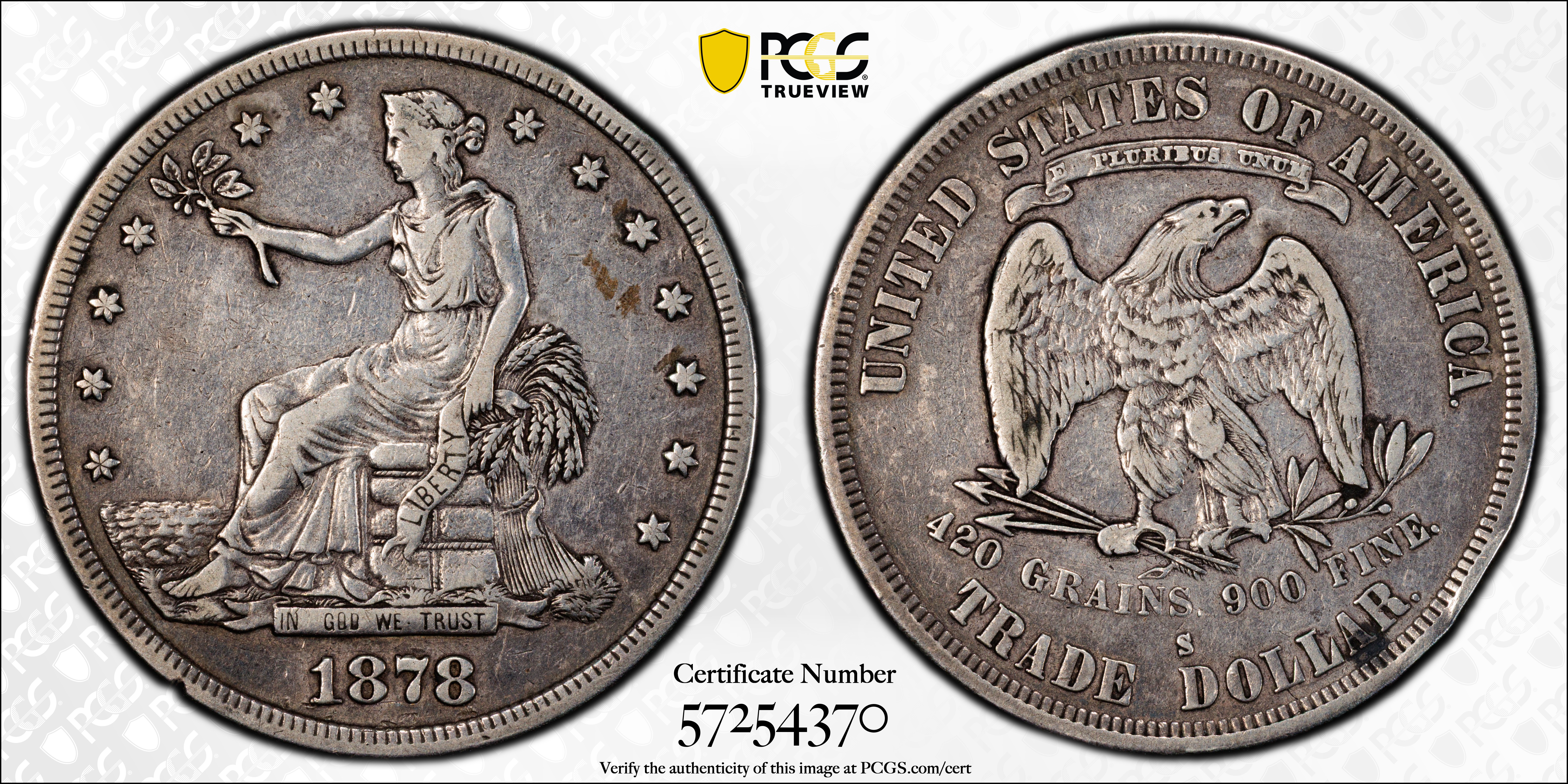 1878-S T$1 Trade VF30 Certification #57254370, PCGS #7048