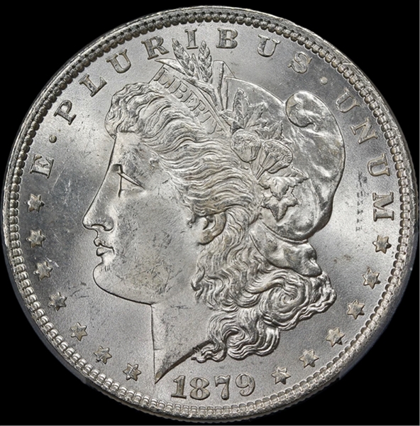 In 1879, the U.S, Mint at Philadelphia made three different Dollar coins: Morgan Dollars; Trade Dollars (Proof-only); and Gold Dollars. Among the Morgan Dollars, the 1879 is popular because it is easy to obtain in all grades, including Gem condition. This date even shows up in MS67, though very infrequently.