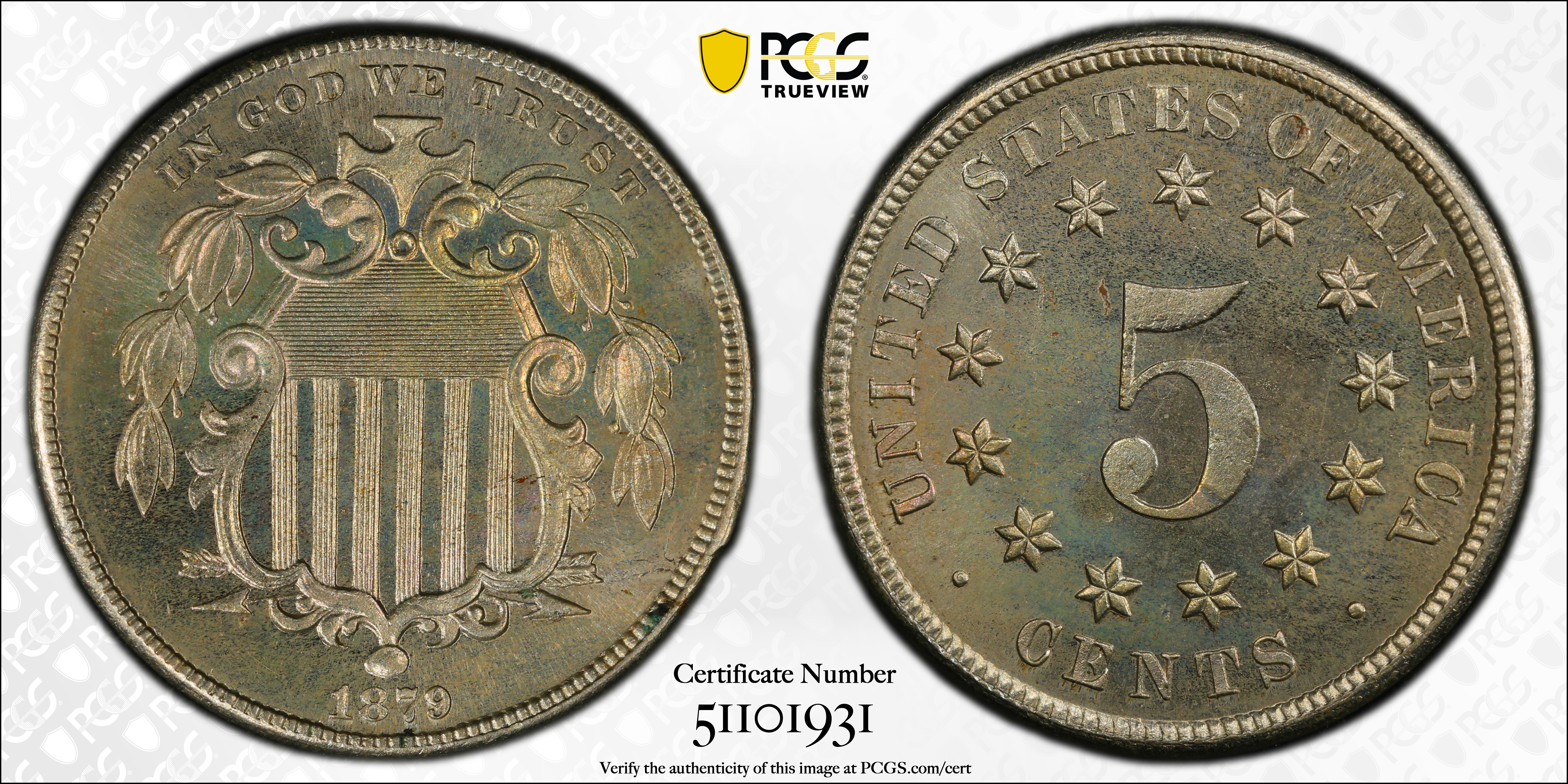 1879 5C PR66 Certification #51101931, PCGS #3833