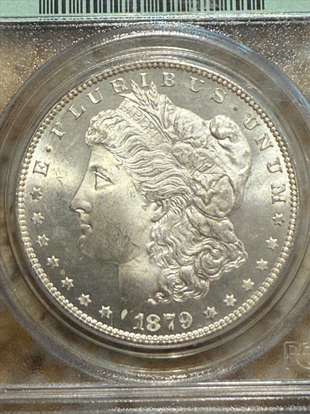 Most often seen among 1879-S dollars are those with the Third Reverse [Reverse of 1879], to continue the nomenclature of 1878',with slanting top arrow feather (SAF) and convex breast on the eagle. Many bags of Uncirculated 1879-S dollars of the Third Reverse type were distributed from the Redfield estate hoard by Paramount International Coin Corporation (then located in Englewood-Ohio), Dollars of this variety were said to have been the third most plentiful holding in the Redfield group. Later, numerous bags of 1879-S Third Reverse dollars in Mint State were in the Continental Illinois Bank hoard and were put on the market.