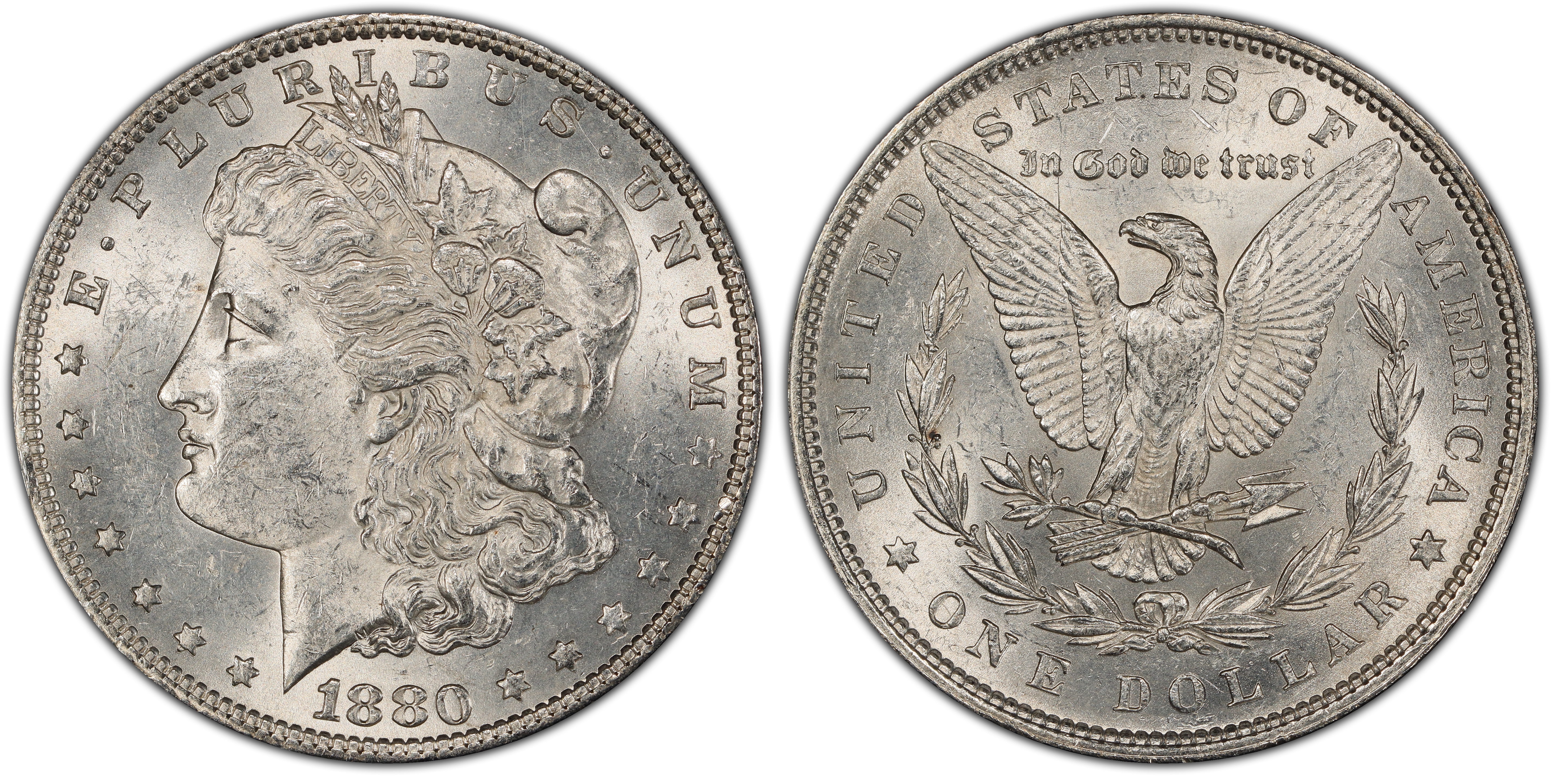 1880 $1 AU58 Certification #44391790, PCGS #7096