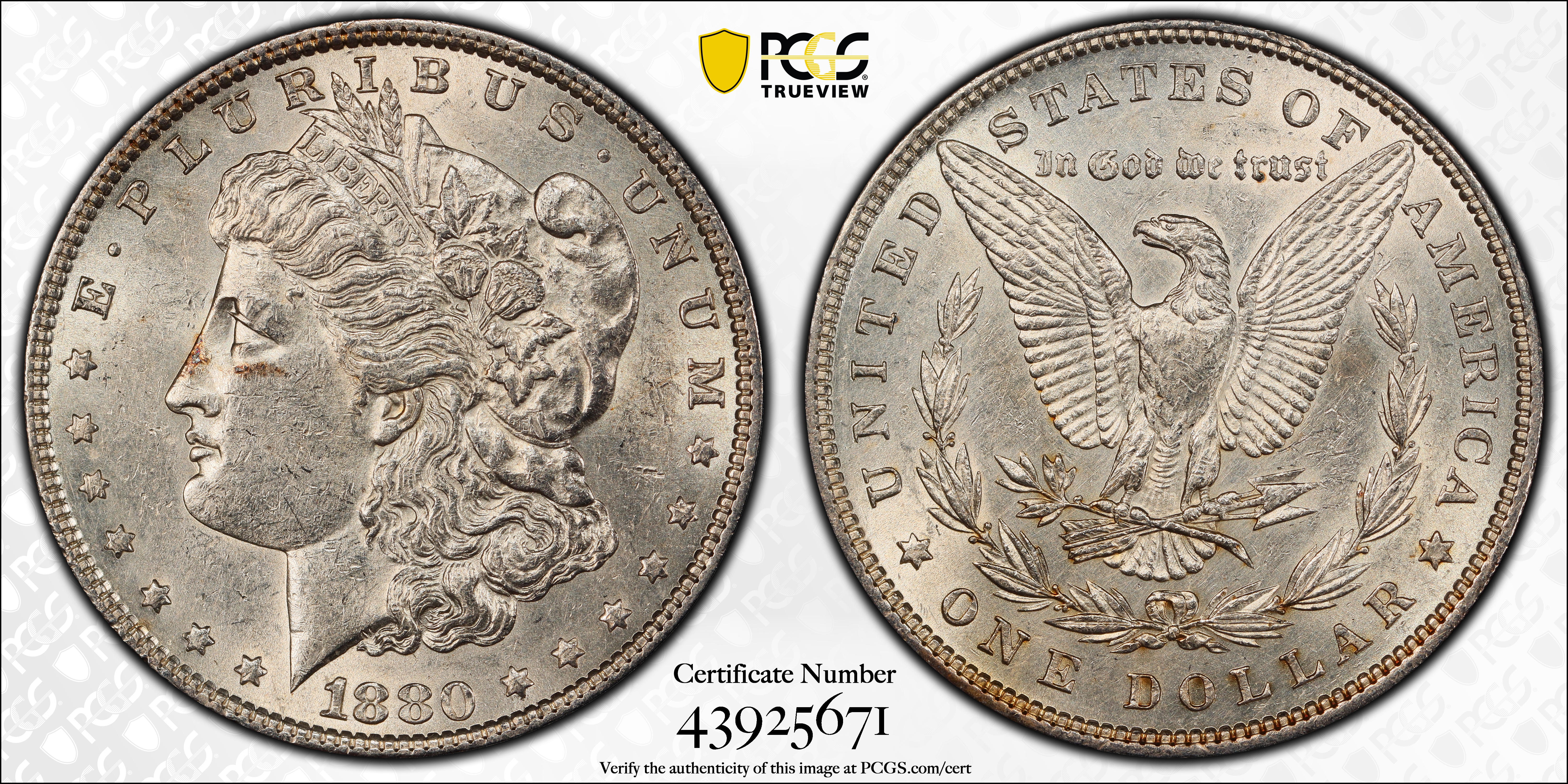 1880 $1 N1 Certification #43925671, PCGS #7096