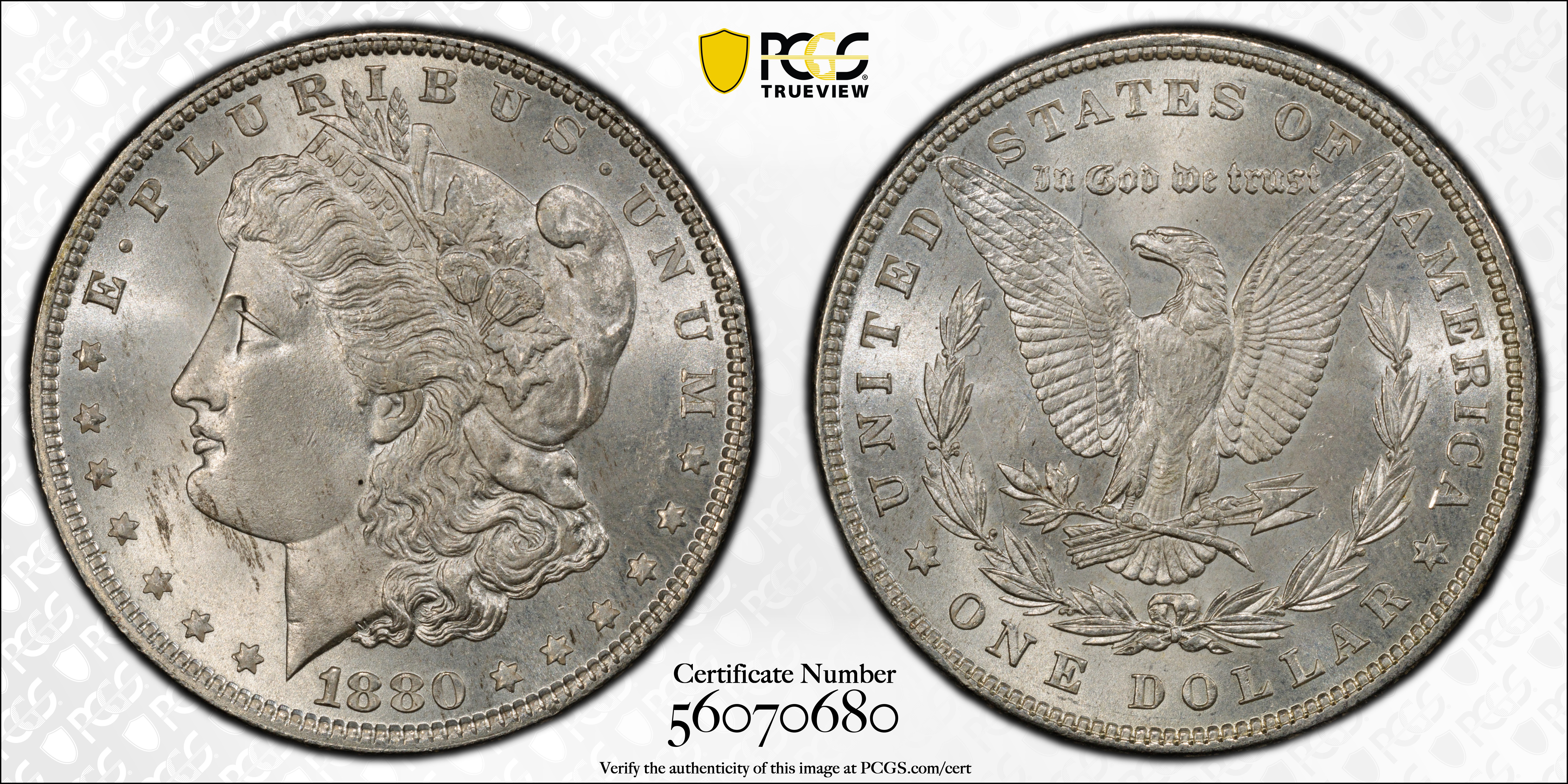 1880 $1 MS65 Certification #56070680, PCGS #7096