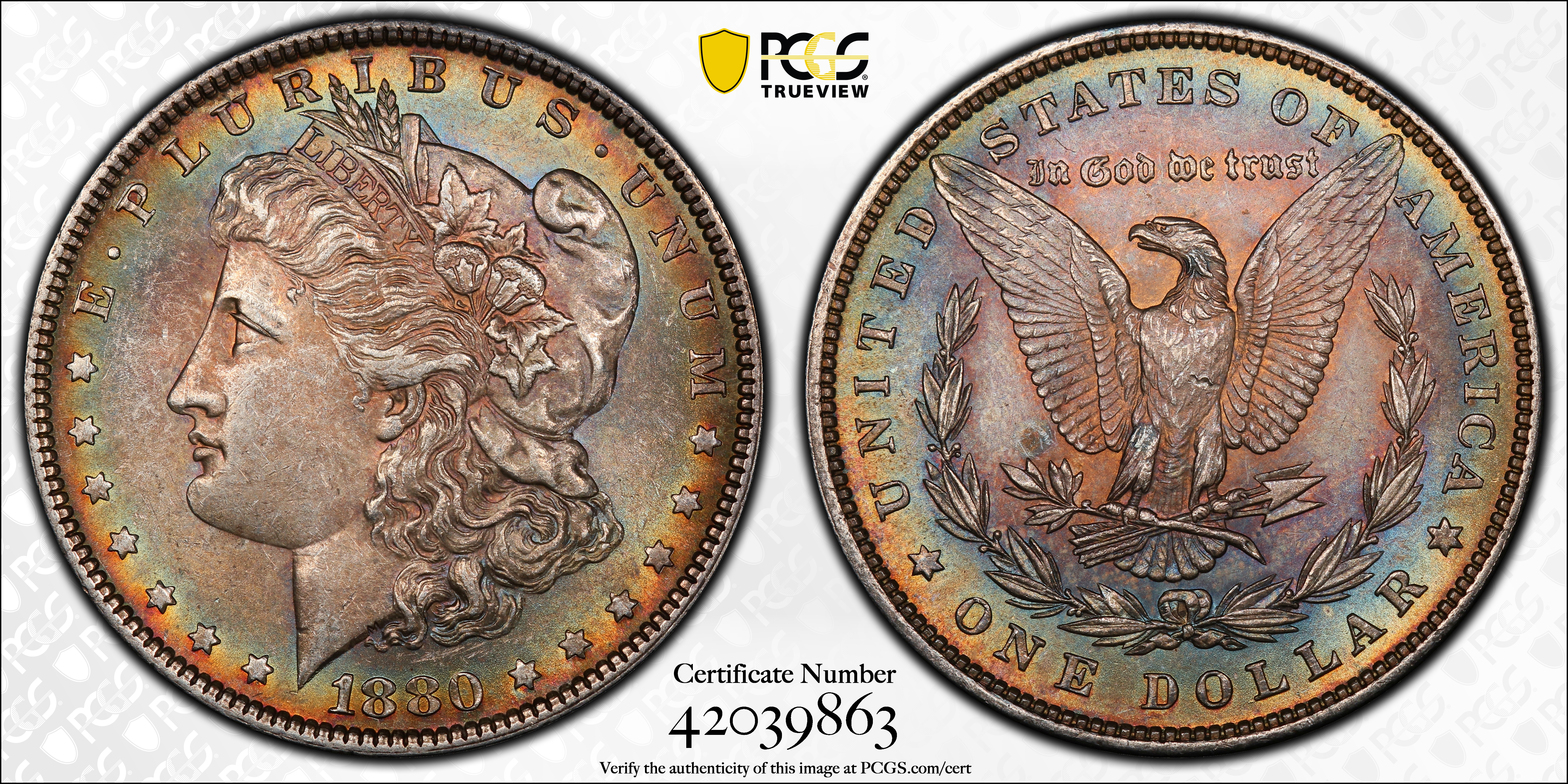 1880 $1 MS62 Certification #42039863, PCGS #7096
