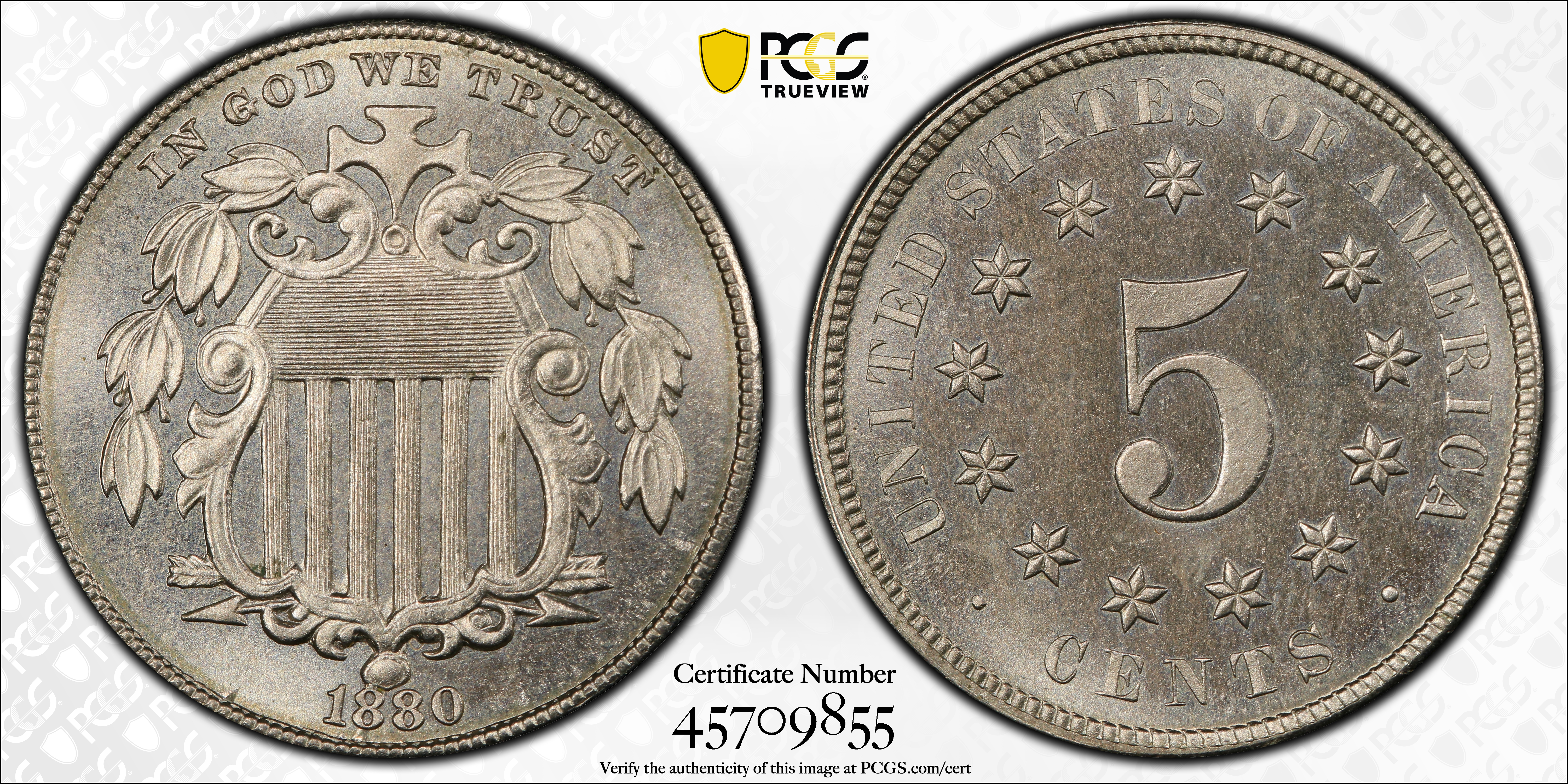 1880 5C PR66 Certification #45709855, PCGS #3835