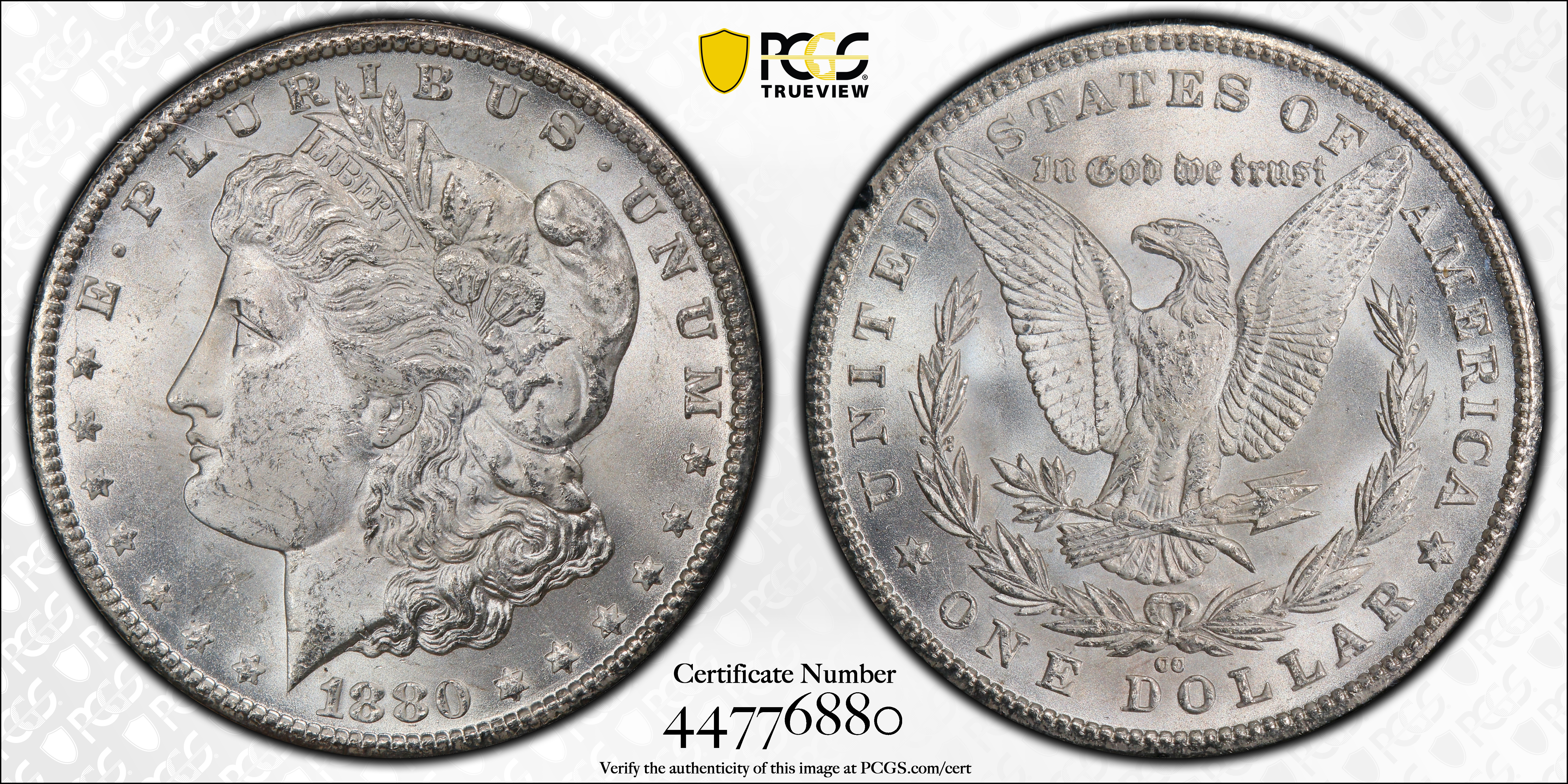 1880-CC $1 GSA Hoard MS63 Certification #44776880, PCGS #518851