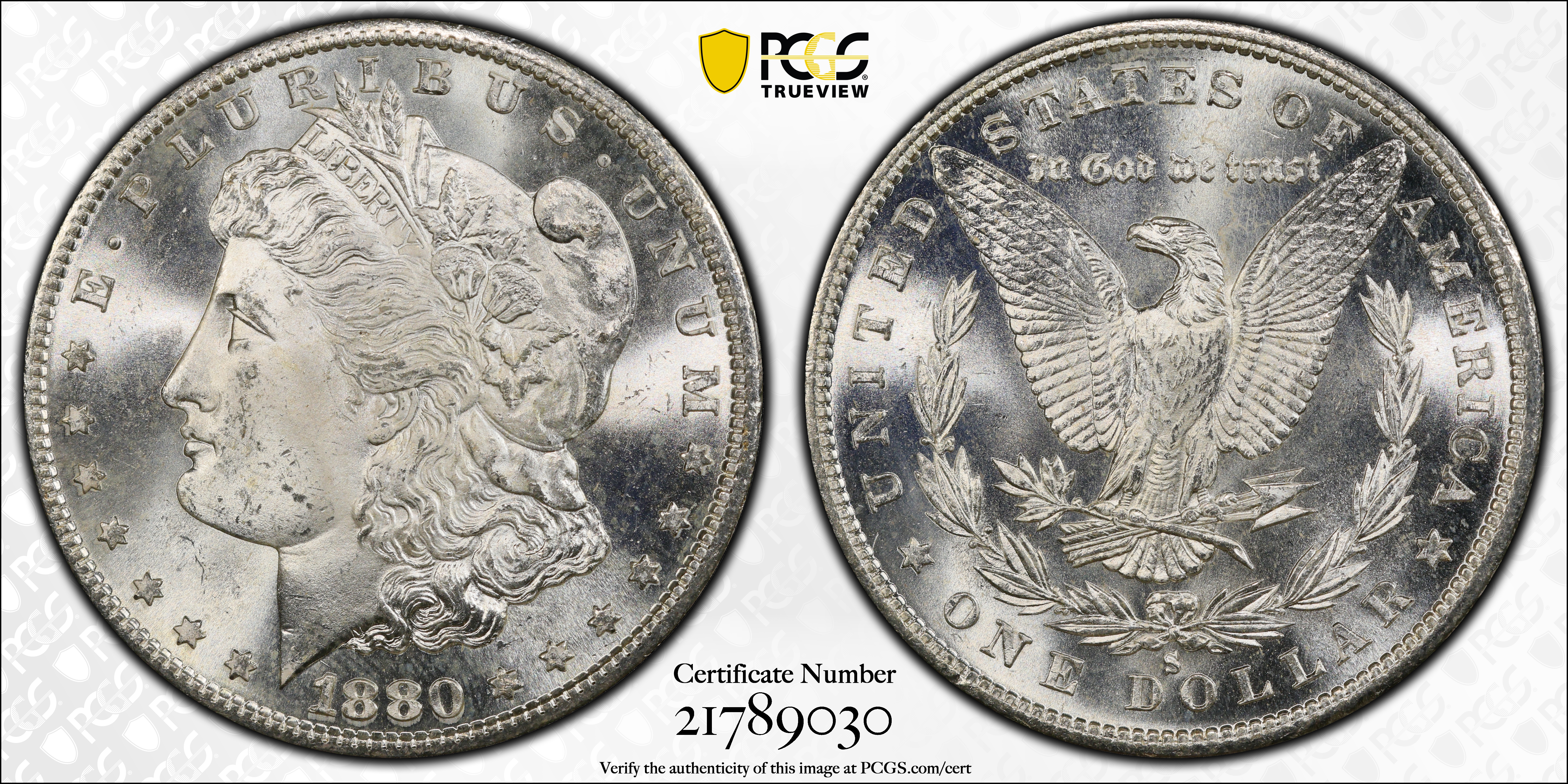 1880-S $1 VAM 10, 8/7 Crossbar TOP 100 MS65 Certification #21789030, PCGS #133888