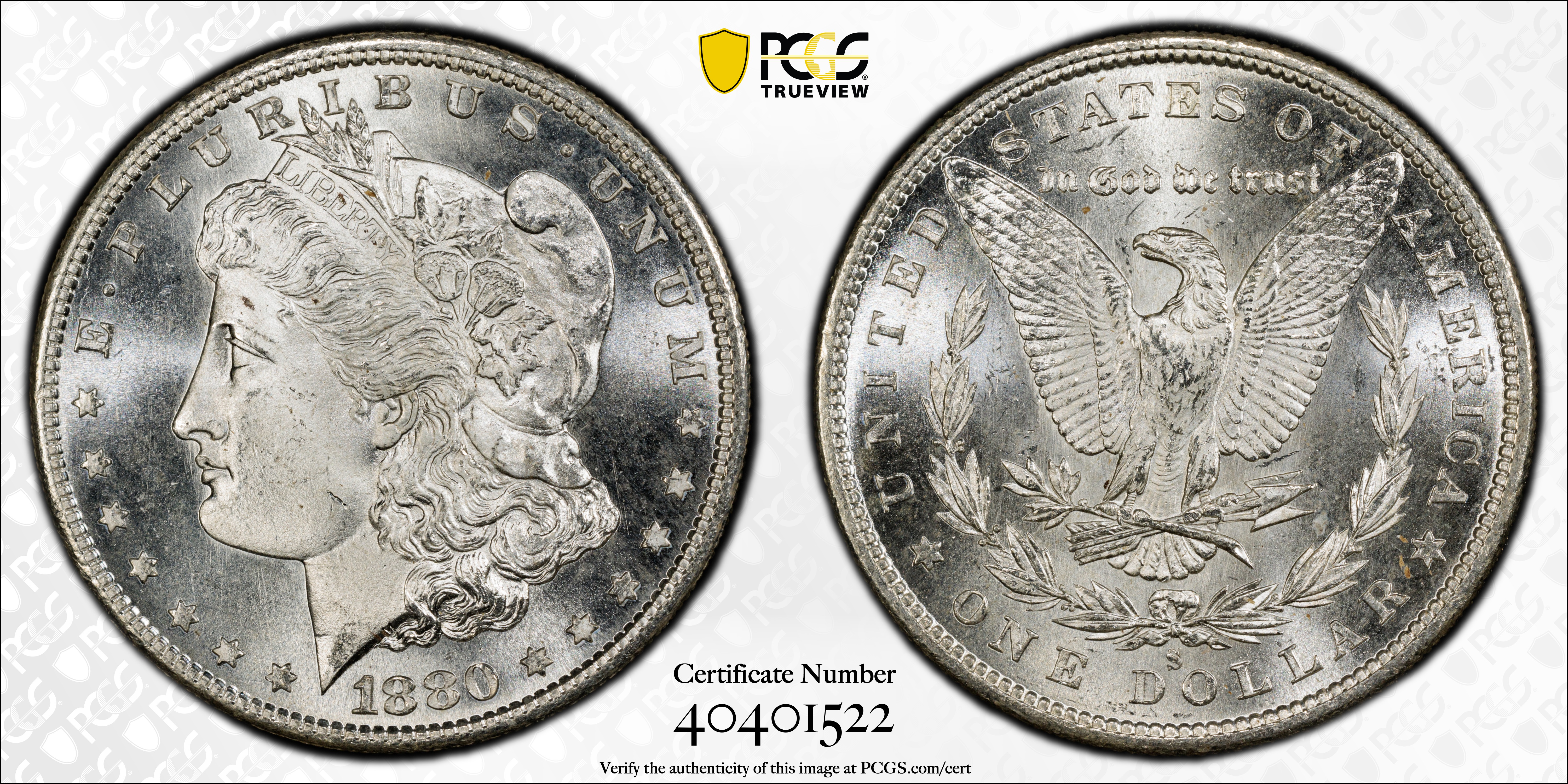 1880-S $1 MS66 Certification #40401522, PCGS #7118