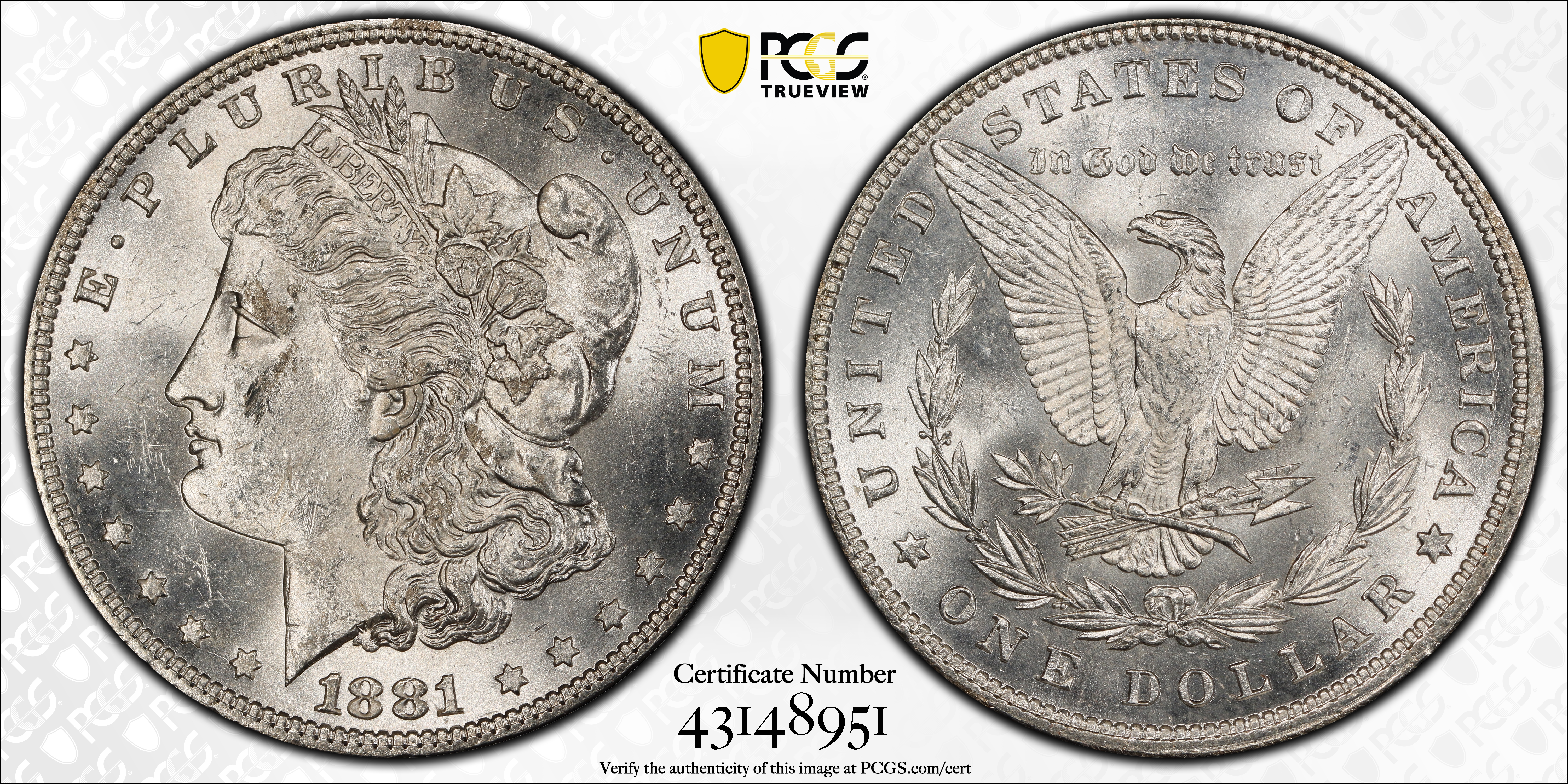 1881 $1 MS62 Certification #43148951, PCGS #7124