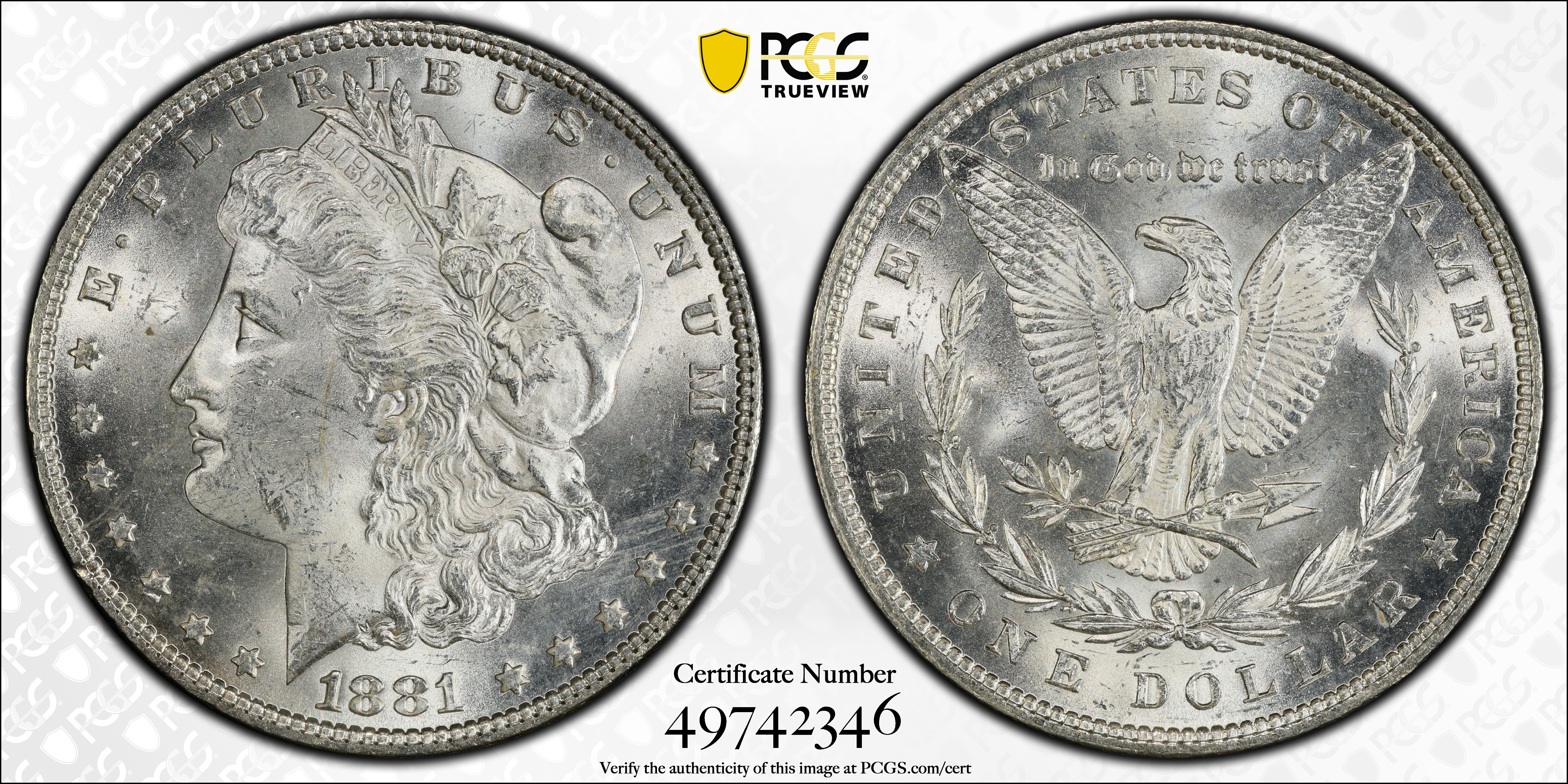 1881 $1 MS63 Certification #49742346, PCGS #7124